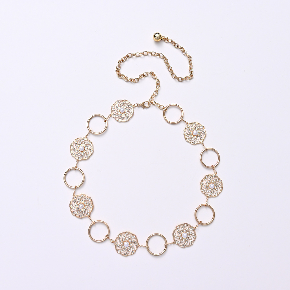 现货金属腰链 创意多环扣女式腰链 欧美风水钻腰封 大衣裙装腰链