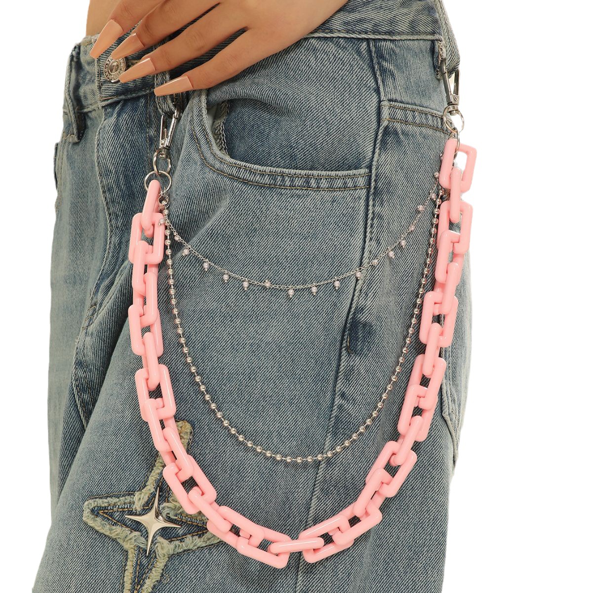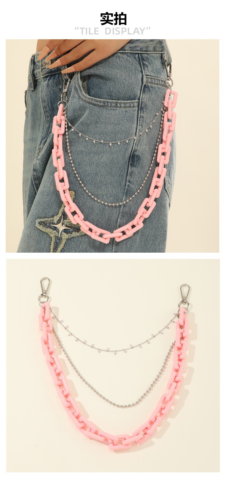 跨境热卖三层裤链 粉色亚克力链条腰链 嘻哈辣妹穿搭腰链厂家批发 English | 投诉