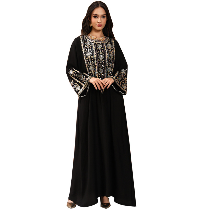 AB497 中东跨境女装阿拉伯连衣裙刺绣绣花时尚亚马逊长袍jalabiya