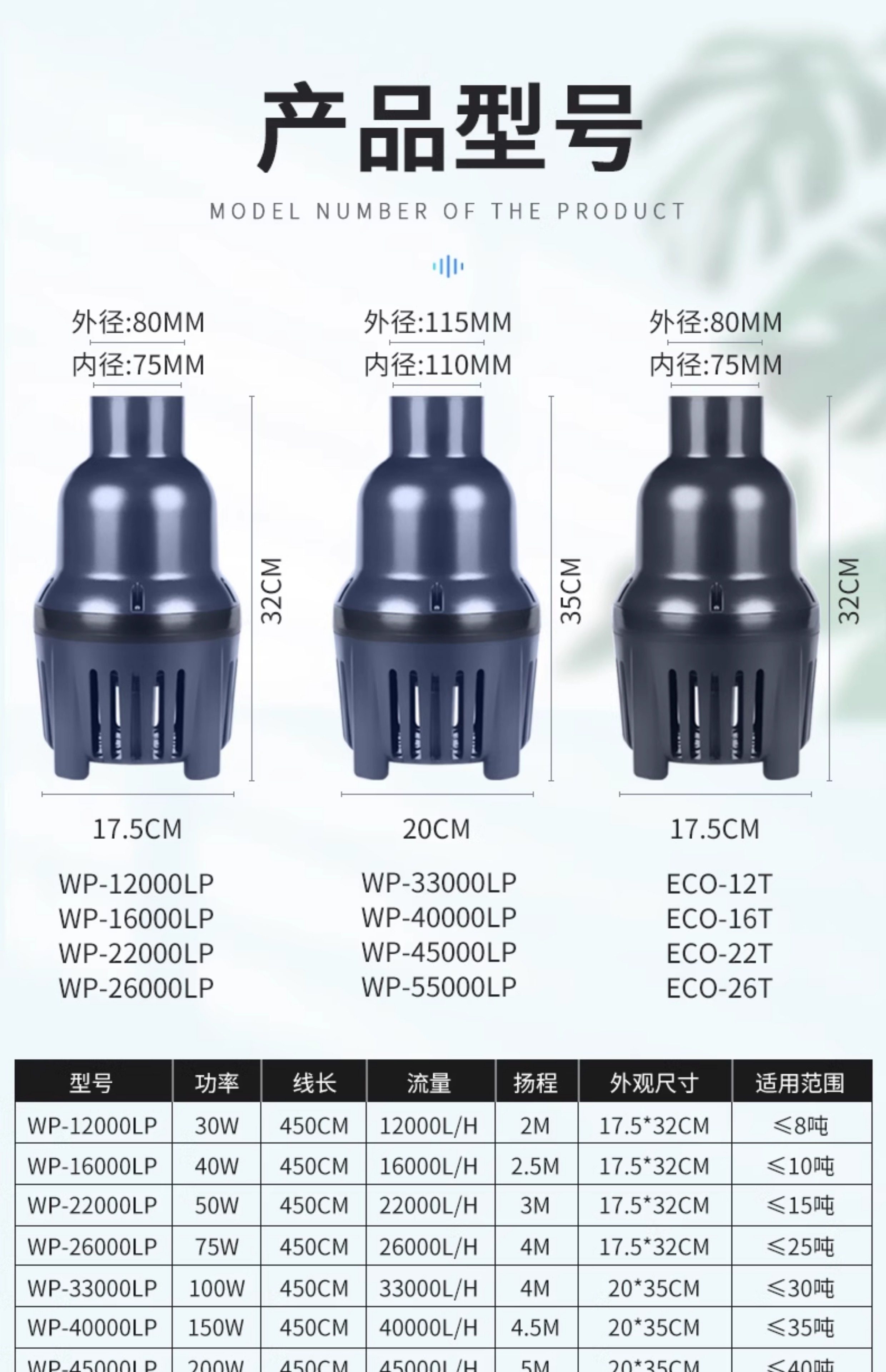 品牌: SOBO/松宝 货号: WP-16000LP 适用场景: 户外池塘 是否变频: 不支持变频 重量: 0.5 kg/件