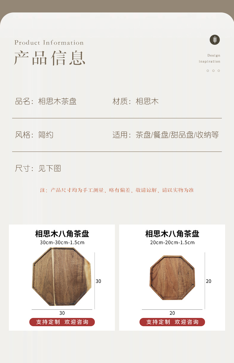 相思木八角茶盘【20*20*1.5cm】 ¥1050 664个可售