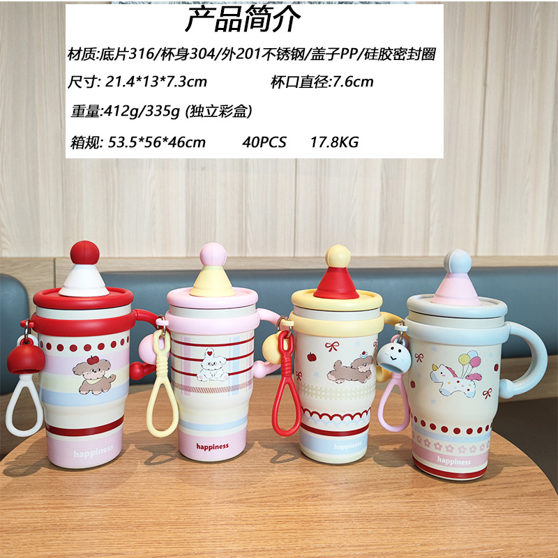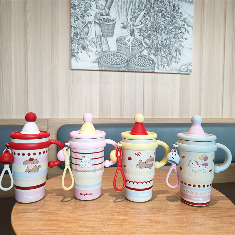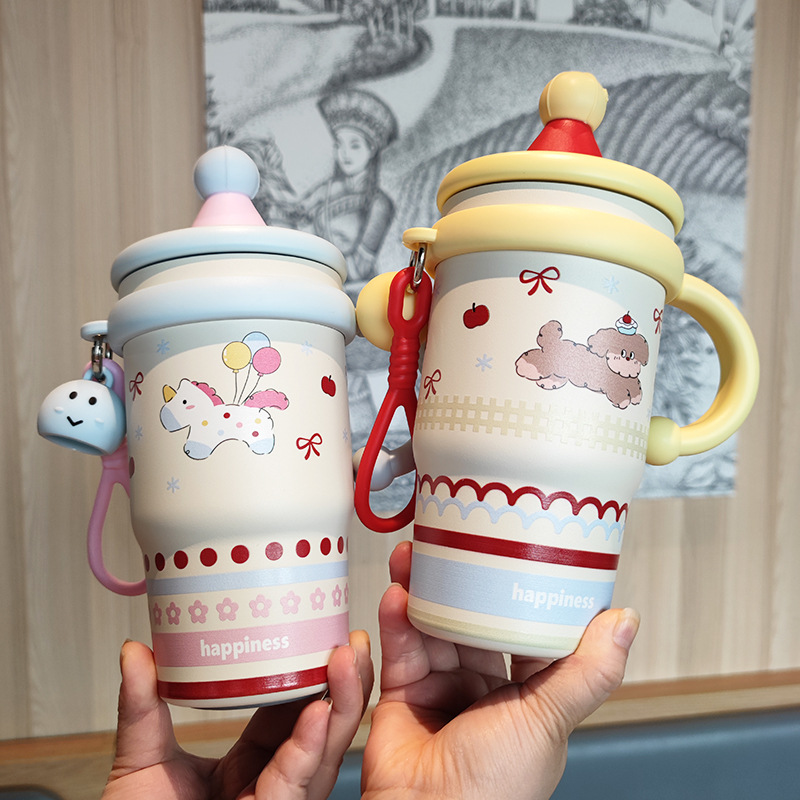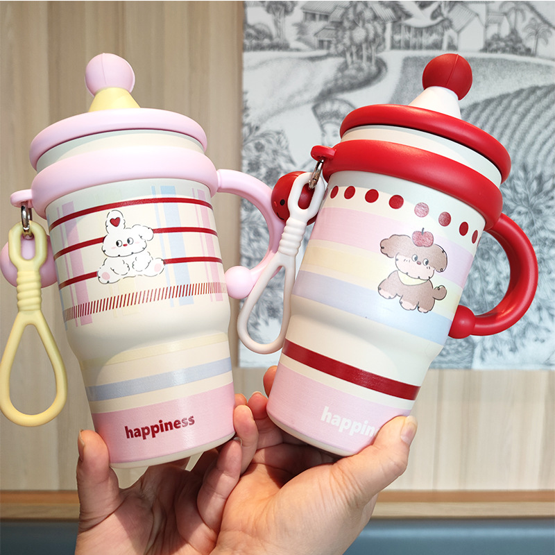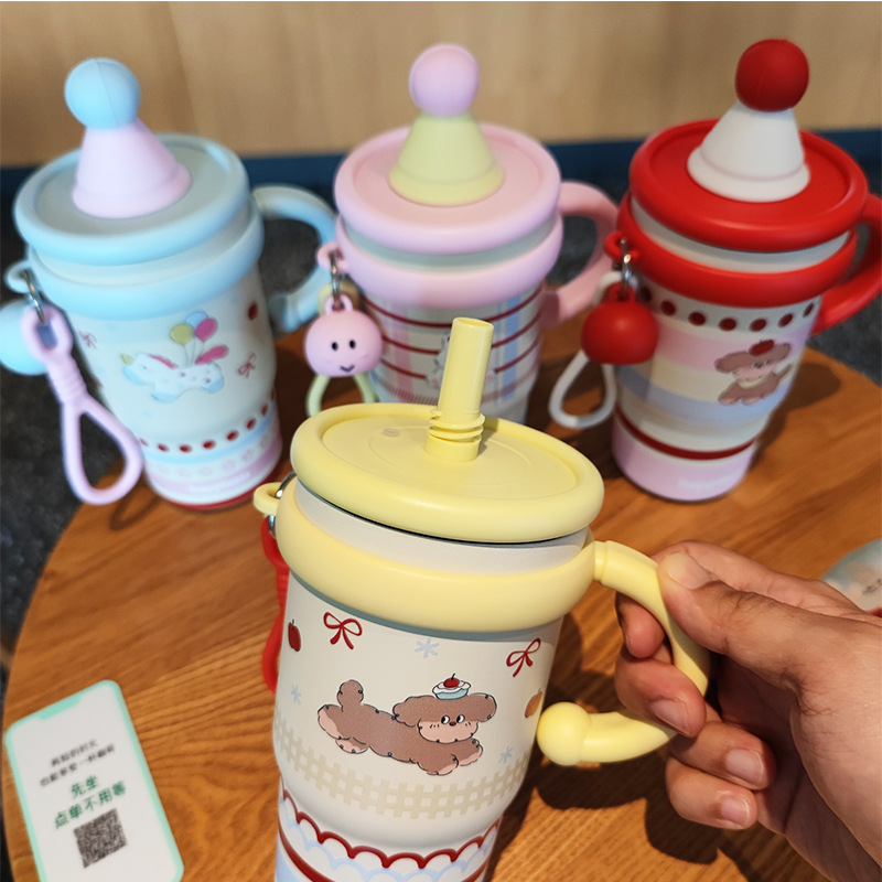 跨境可爱高颜值少女心女生不锈钢大容量桌面杯子保温杯吸管水杯