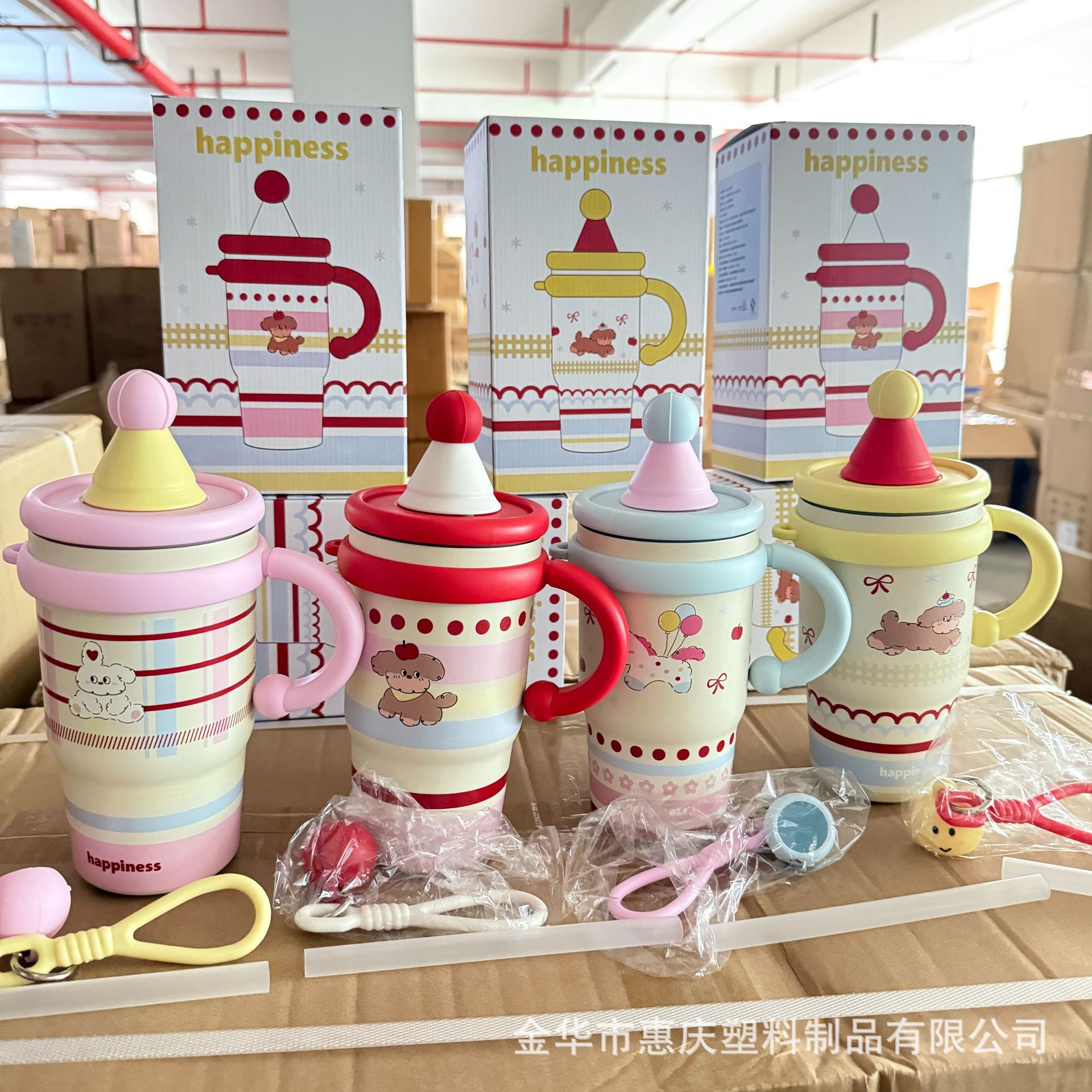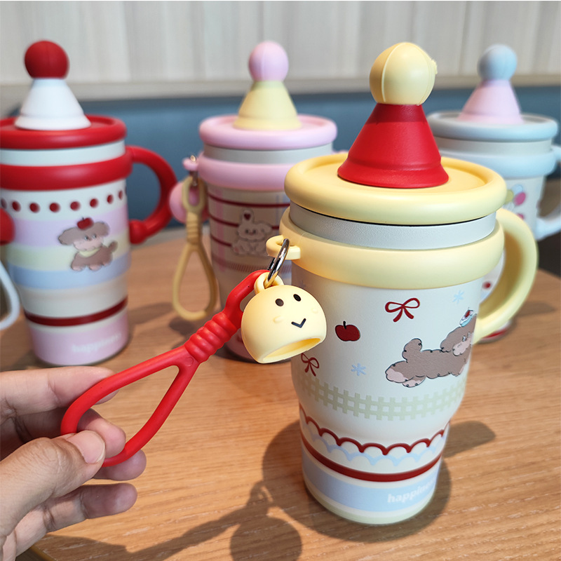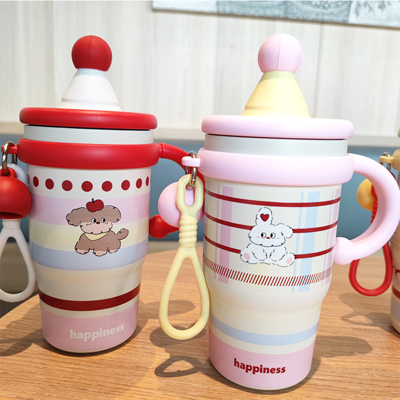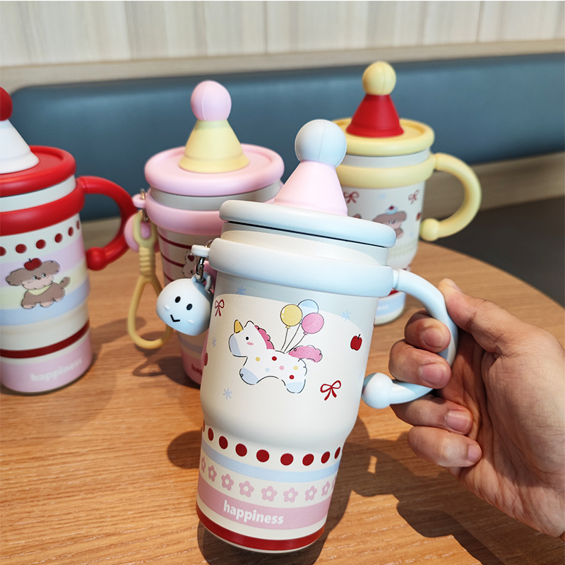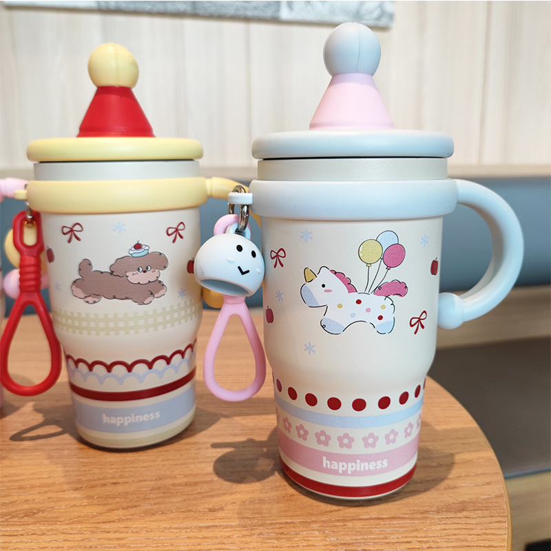 跨境可爱高颜值少女心女生不锈钢大容量桌面杯子保温杯吸管水杯