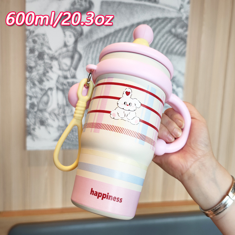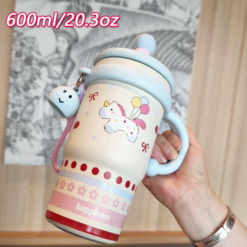 跨境可爱高颜值少女心女生不锈钢大容量桌面杯子保温杯吸管水杯 English | 投诉