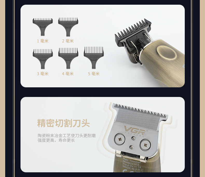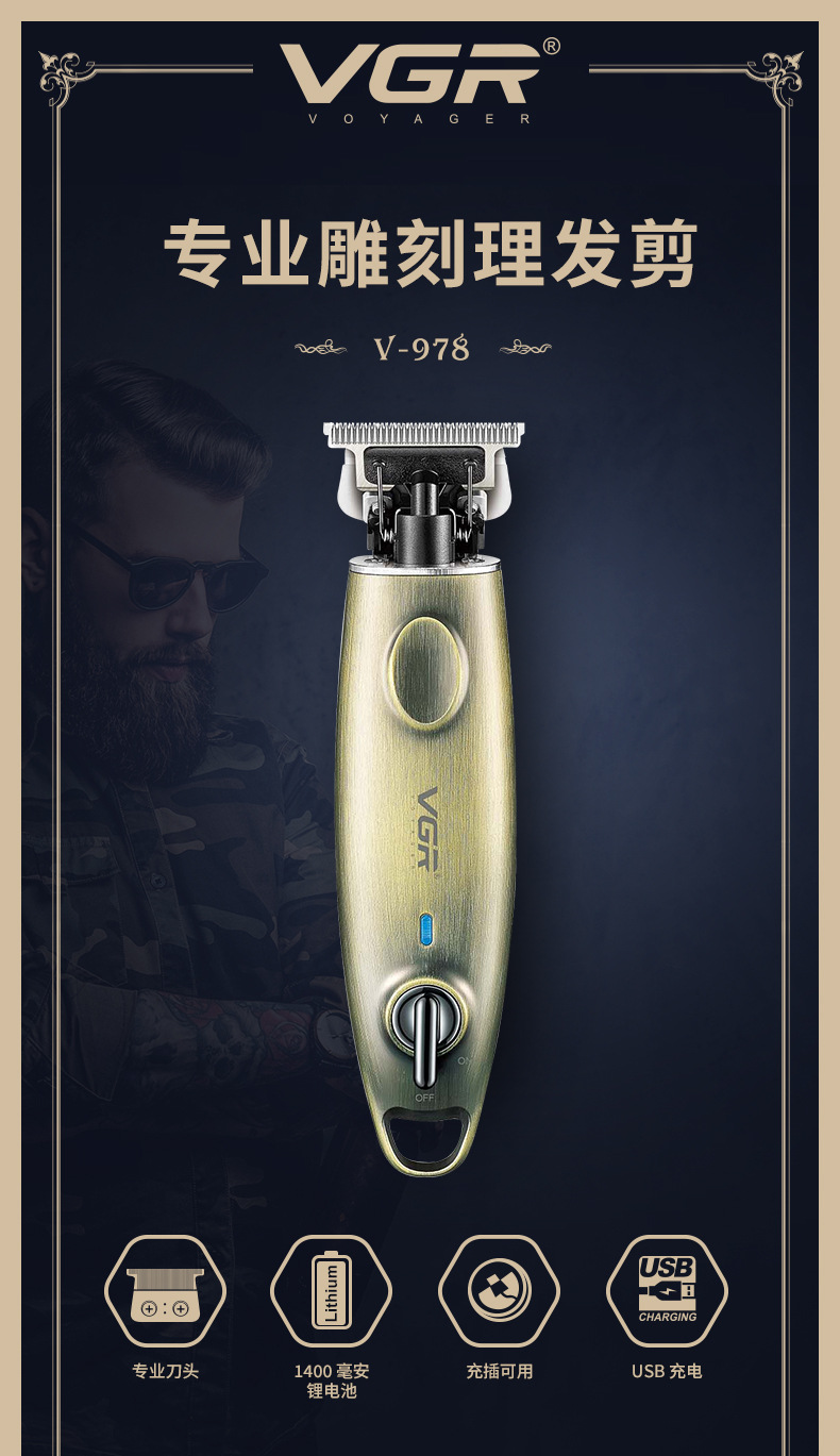定制VGR978新款发廊油头雕刻推白理发器理发店充电男士专业电推剪 投诉