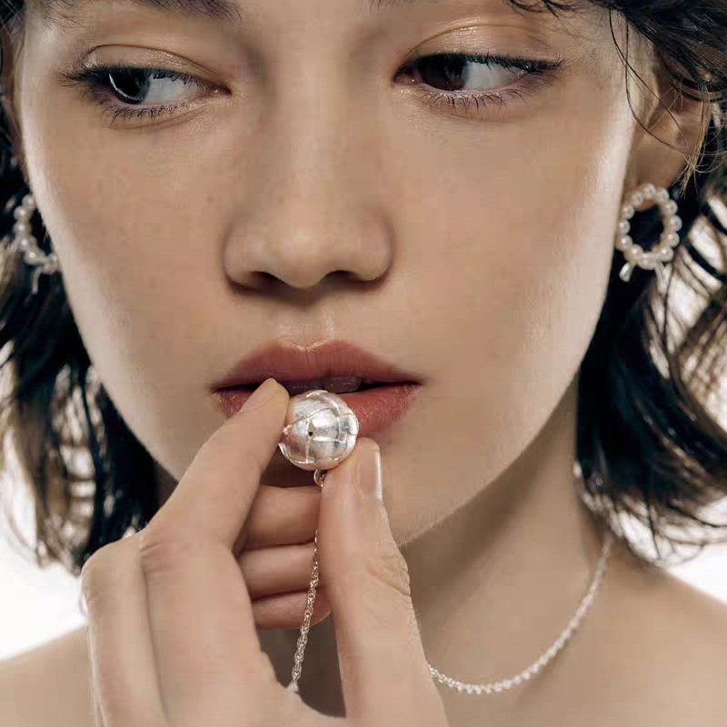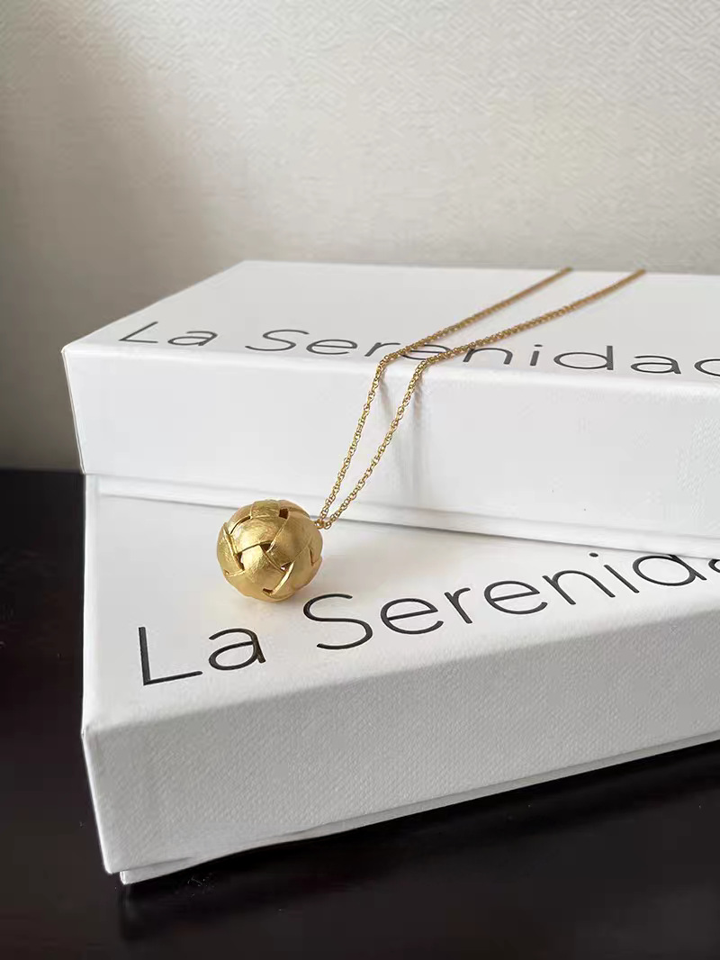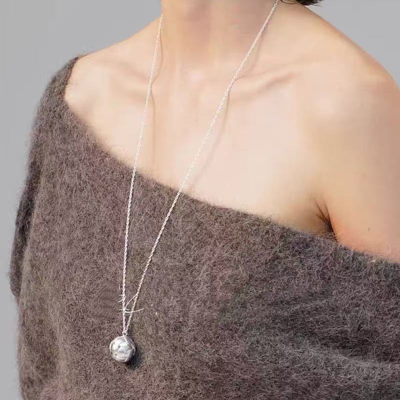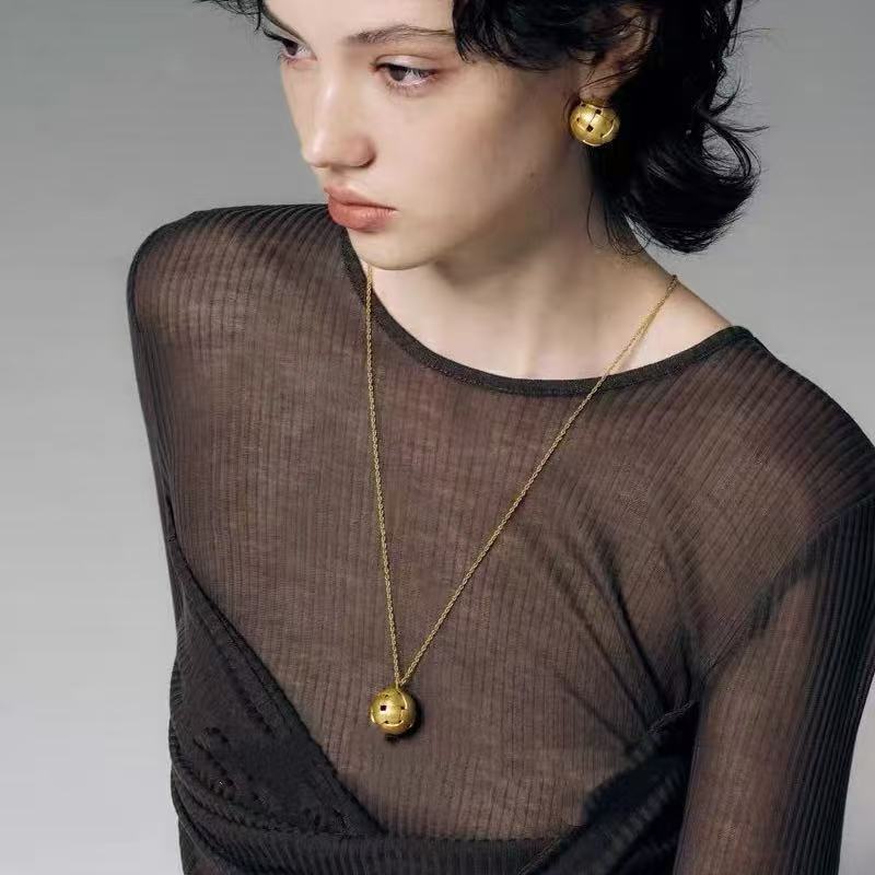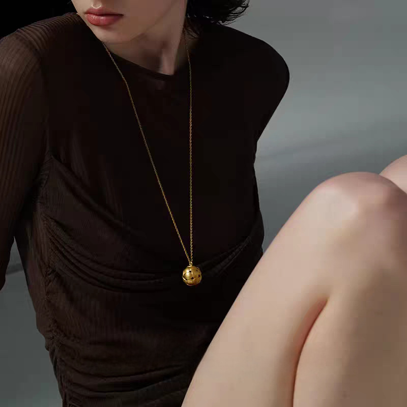 小众饰品铜镀金银编织空心网状圆球磨砂雾面肌理长款叠戴项链女