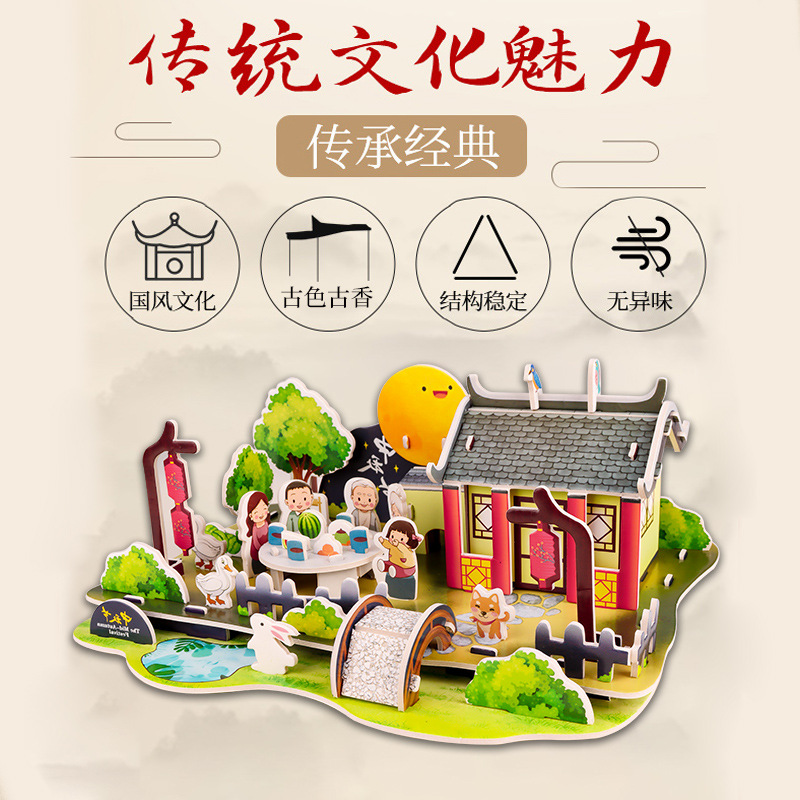 立体拼图是一种老少皆宜的 玩具 孩子玩既可以锻炼其动手能力 增强其空间立体感应能力,等等 达到益智的目的家长玩可以陶冶其情操 给自己一点时间和空间抽出点时间静静地享受一个名筑在手中成型 如果和小朋友或者家人一起合作拼图还可以来一件家庭小活动