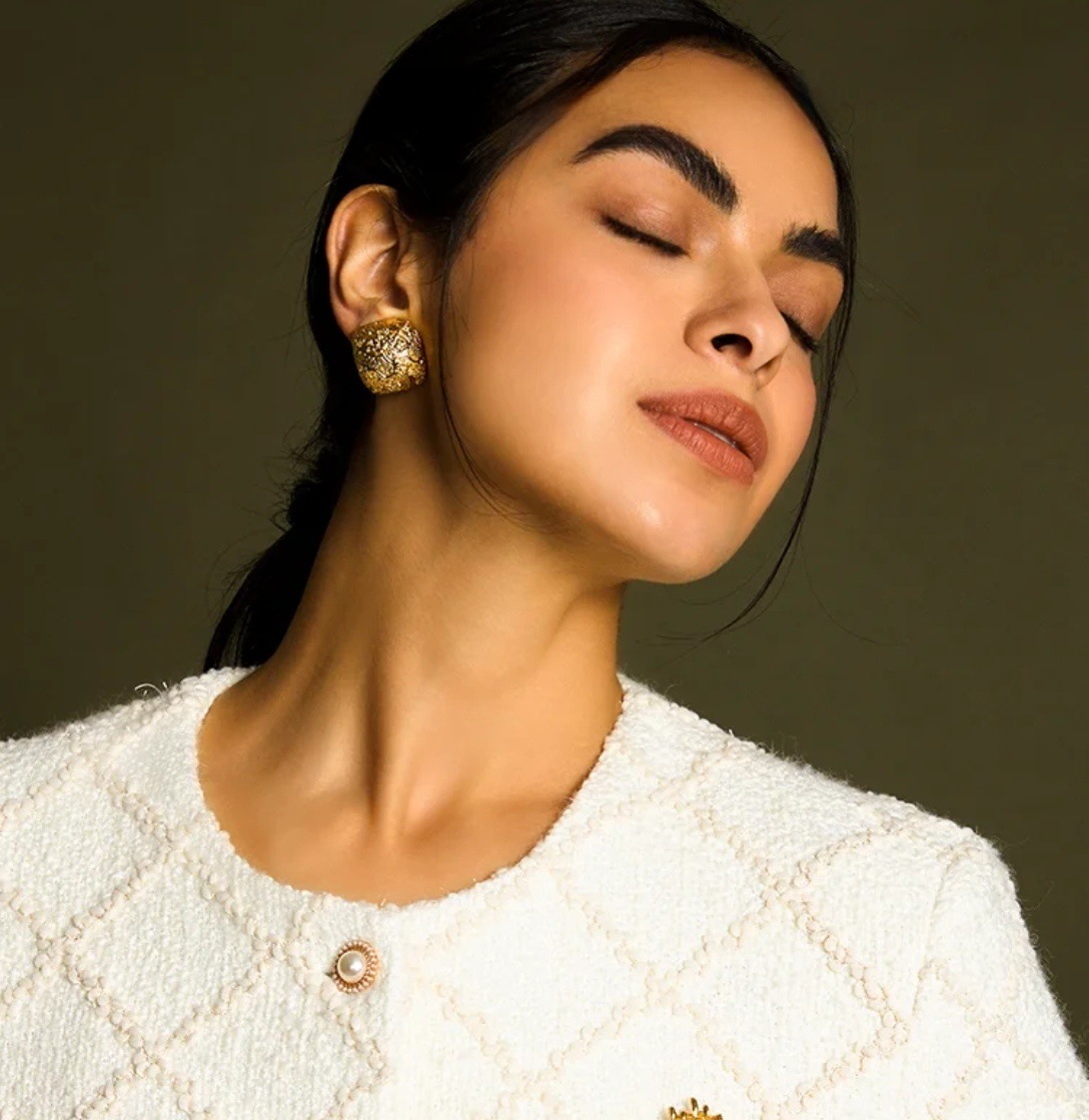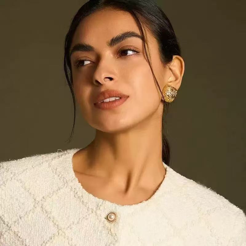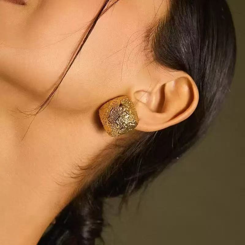 2025 春晚刘惜君同款 法式复古素金熔岩方形耳钉女气质耳环小众轻 投诉