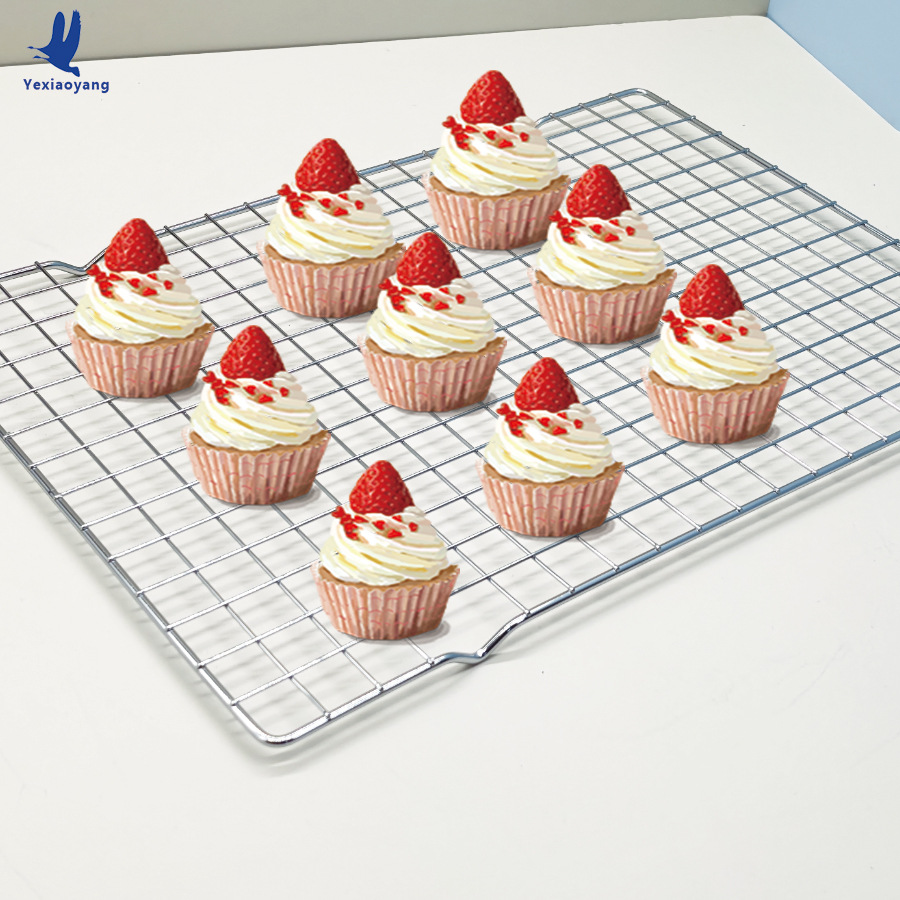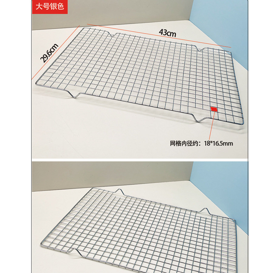 跨境烘焙用品大全蛋糕模具戚风冷却架 银色带脚长方形晾晒烧烤网