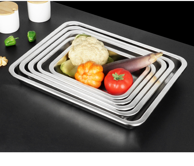 304不锈钢方盘 深浅蒸饭盘加厚烧烤盘烤鱼盘冲孔茶池方盘方形托盘
