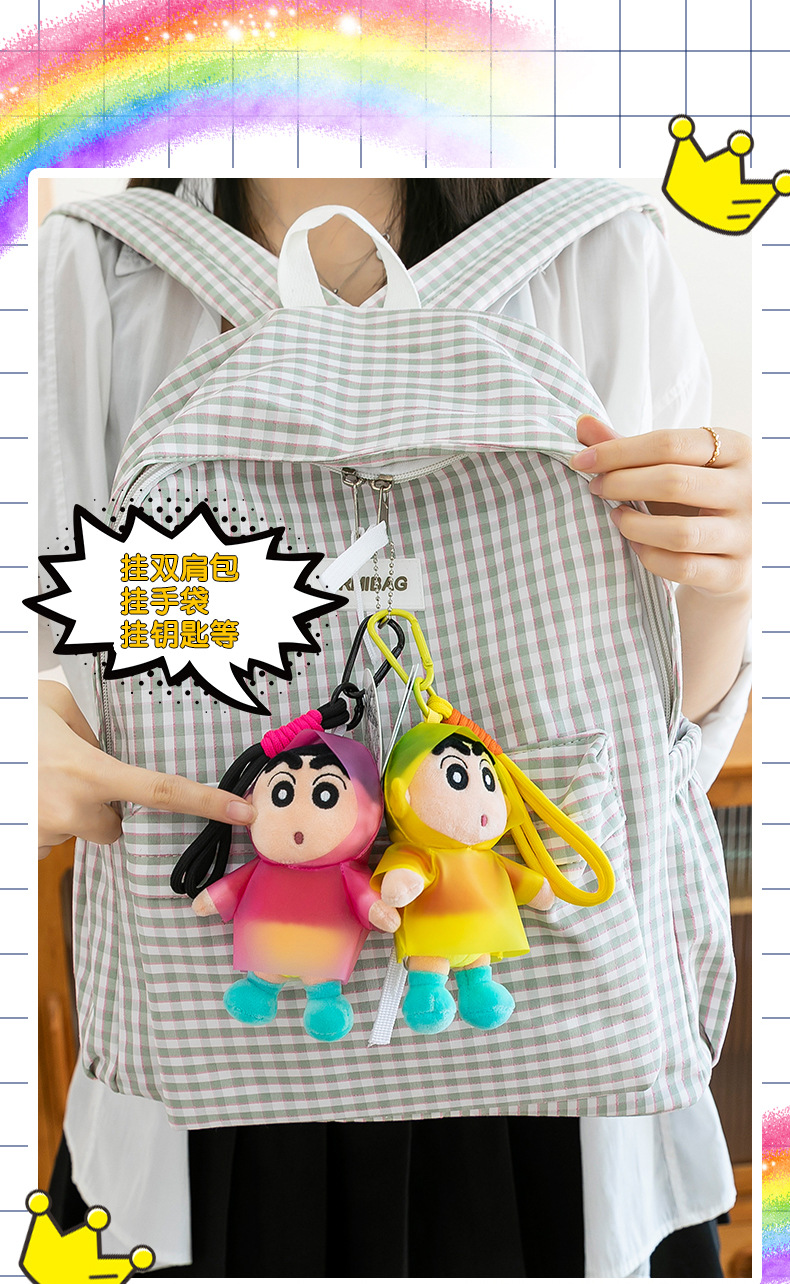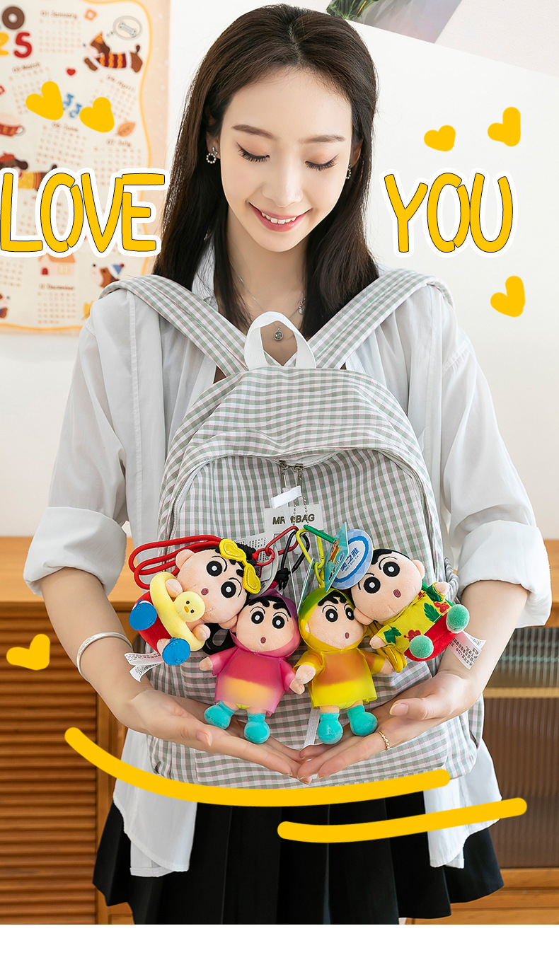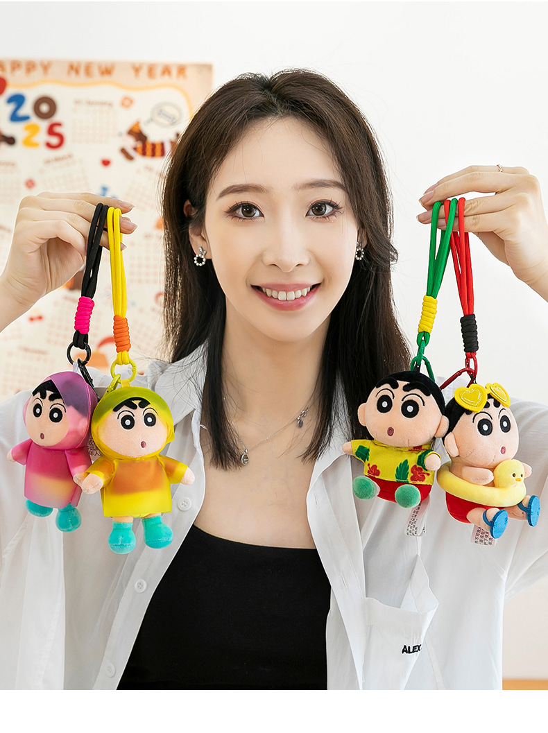 包包卡通毛绒玩具挂饰网红正版公仔饰蜡笔小新钥匙扣玩偶礼品挂件 English | 投诉