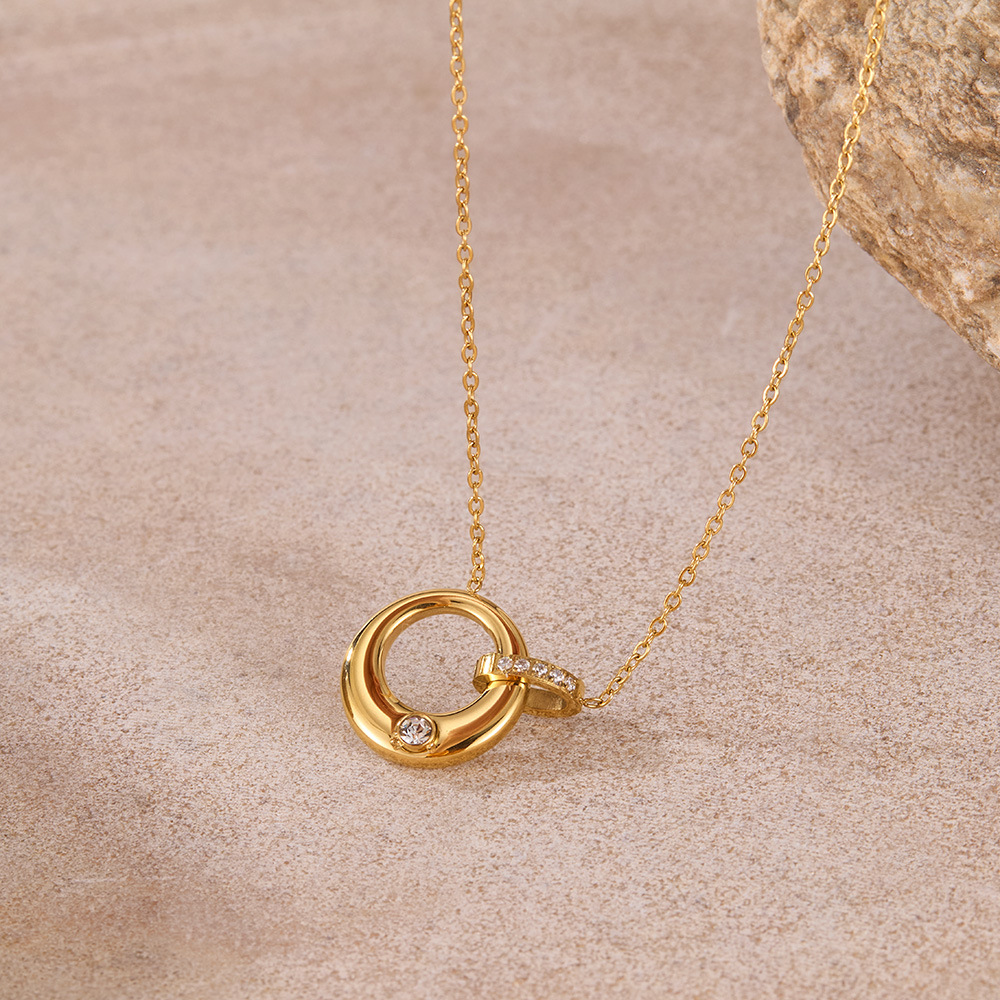 跨境INS钛钢大小双环项链女饰品批发小众个性锁骨链不锈钢首饰 English | 投诉