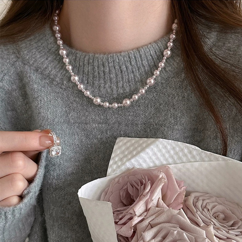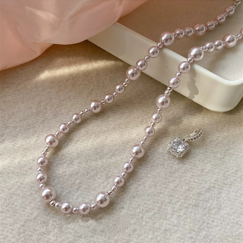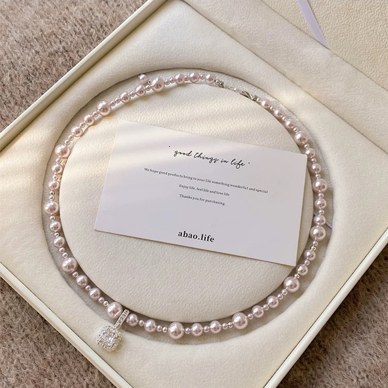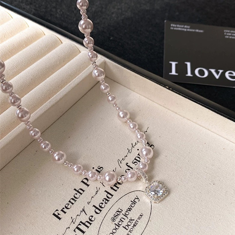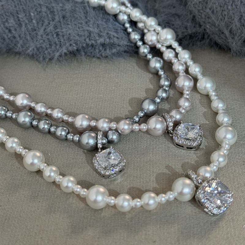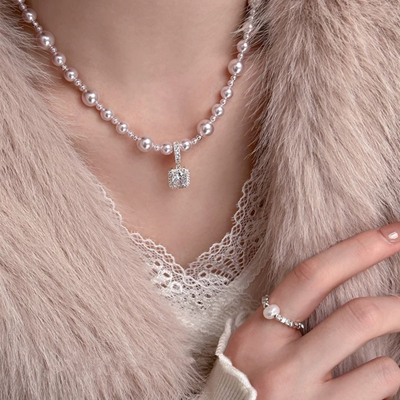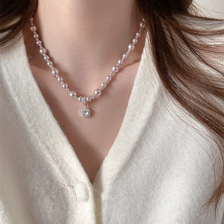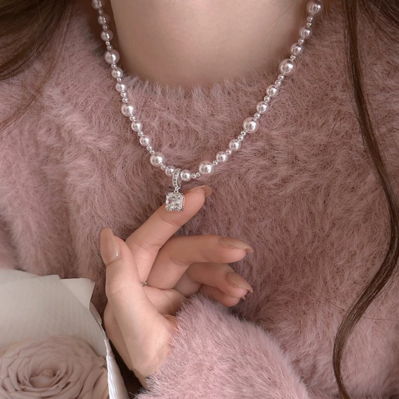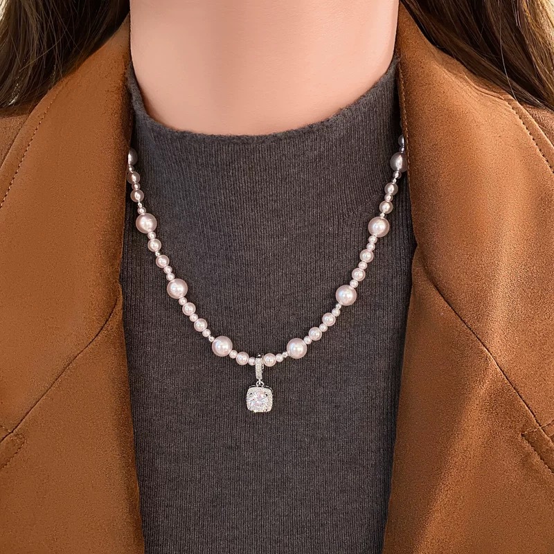 曼塔玫瑰方钻施家珍珠项链轻奢小众高级感颈链毛衣链气质锁骨链女 English | 投诉