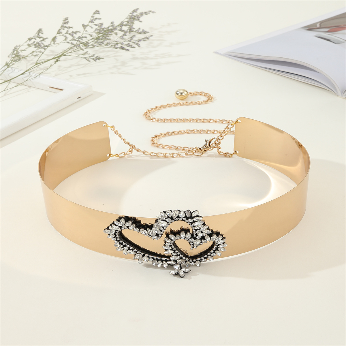 新款爱心设计波西米亚风金属腰带亮面贴片腰带配饰单圈身体链配饰 English | 投诉