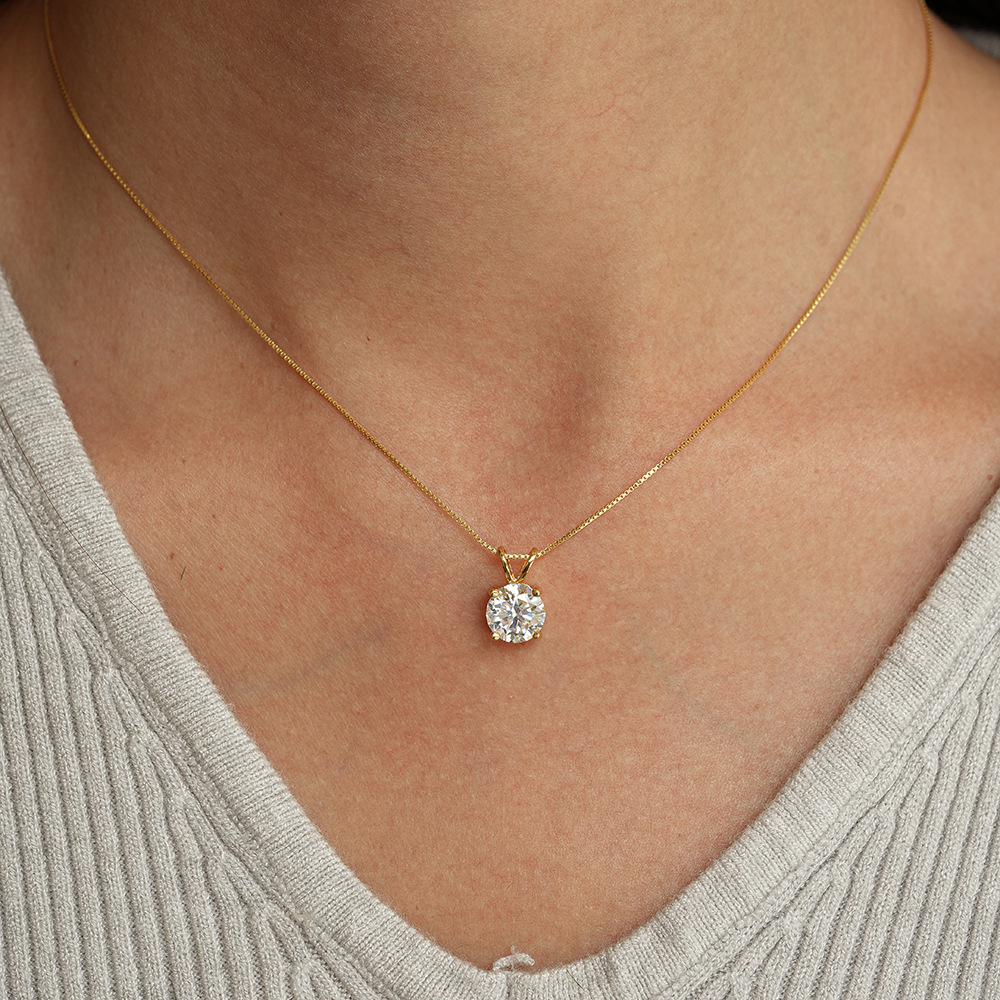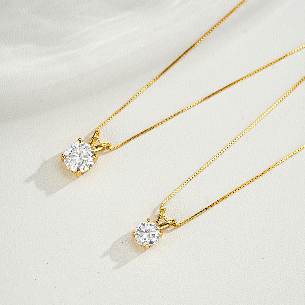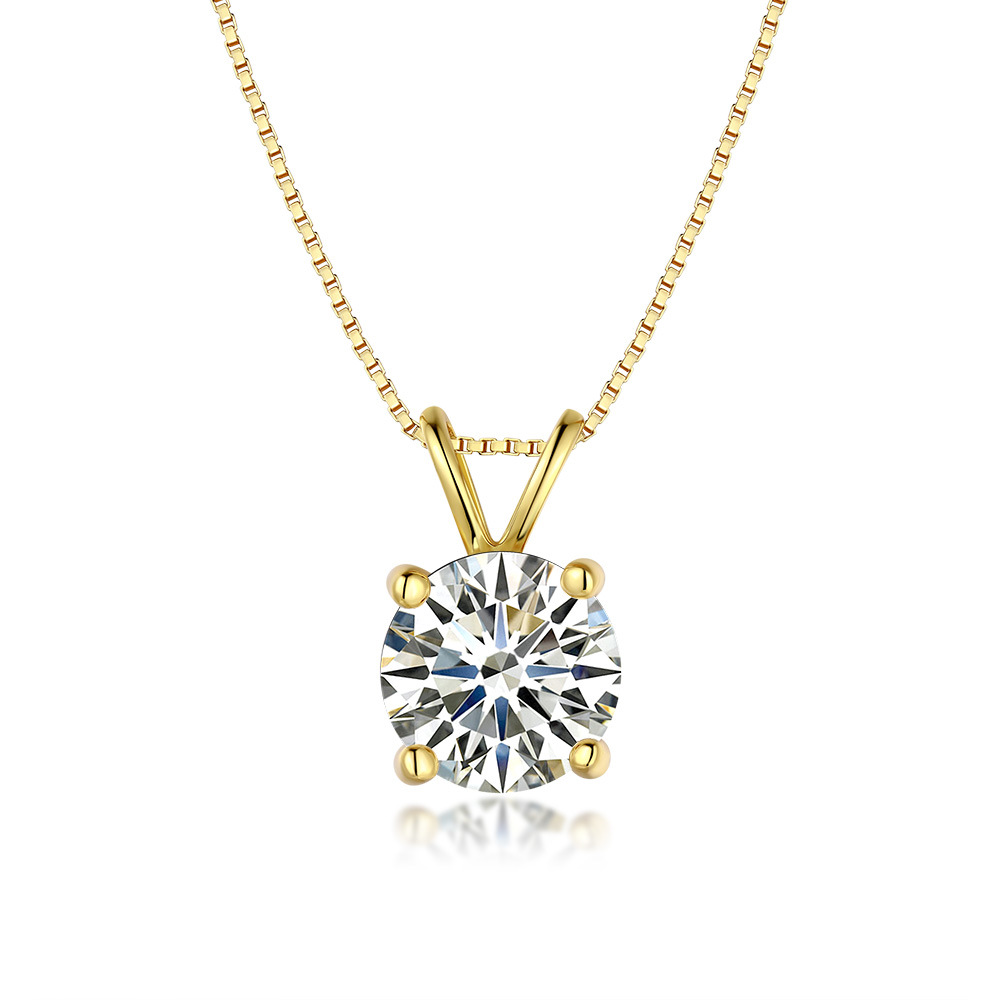 925纯银四爪吊坠莫桑石项链经典镀14K黄金色1克拉跨境直播
