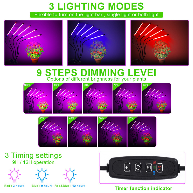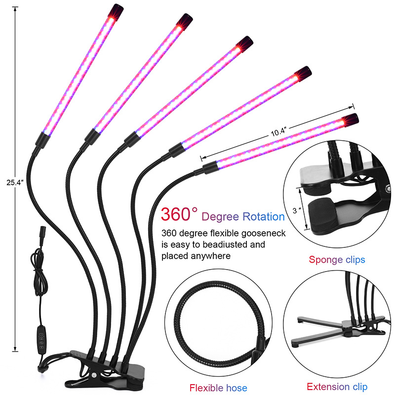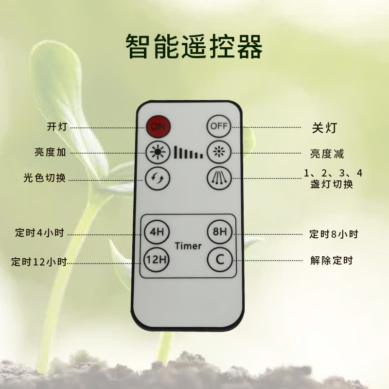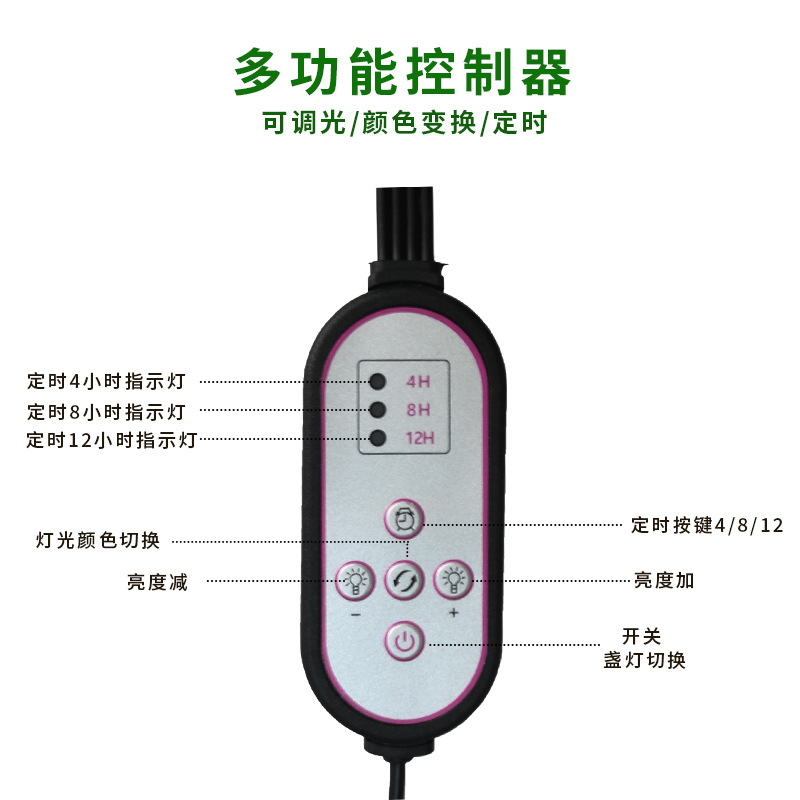 此款夹子植物灯采用usb接口1头和2头的可以随便接各种USB对应口,如电脑,充电宝,适配器。3头4头5头由于功率增大了,需要大一点功率的适配器,如果接太小功率的适配器担心适配器损坏(最好是5v3A)。此夹子植物灯统统采用大控制器有定时和记忆定时功能,在不关闭电源的情况下,可以设置每天循环开关。控制器还有调节亮度,颜色等十种调节。