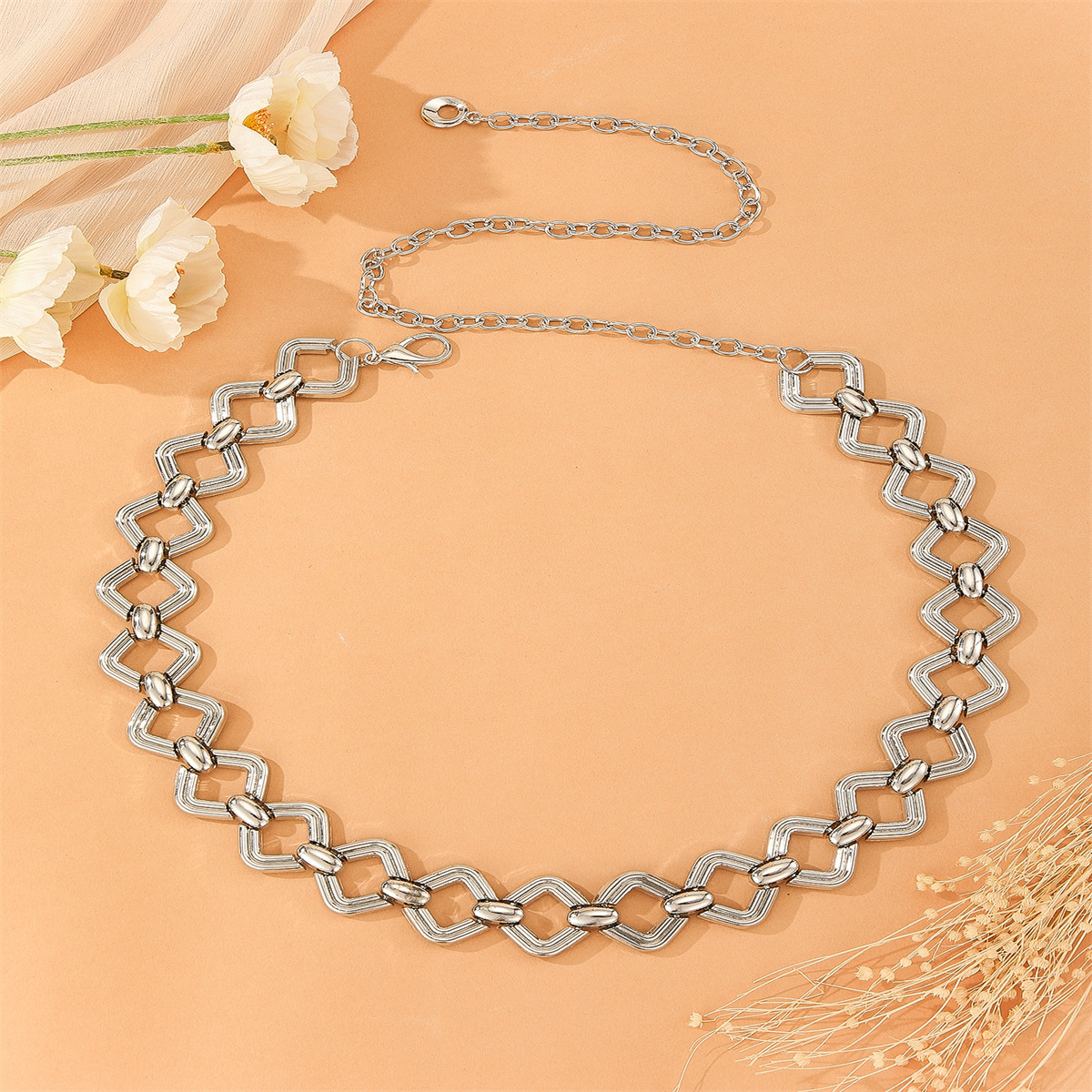 跨境百搭腰链金属腰链创意菱形腰带女士连衣裙礼服腰带链条批发 English | 投诉
