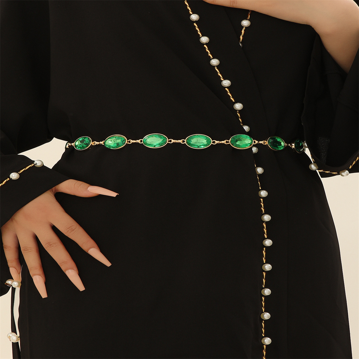 欧美热卖绿宝石腰链 复古波西米亚风腰链连衣裙礼服搭配金属腰链