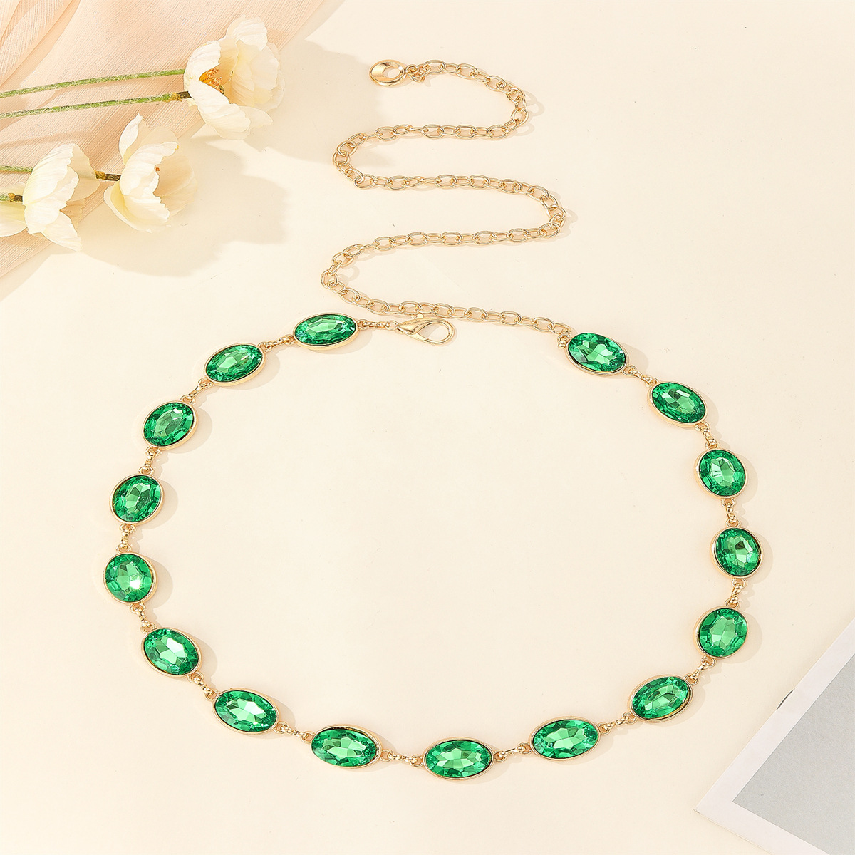 欧美热卖绿宝石腰链 复古波西米亚风腰链连衣裙礼服搭配金属腰链 English | 投诉