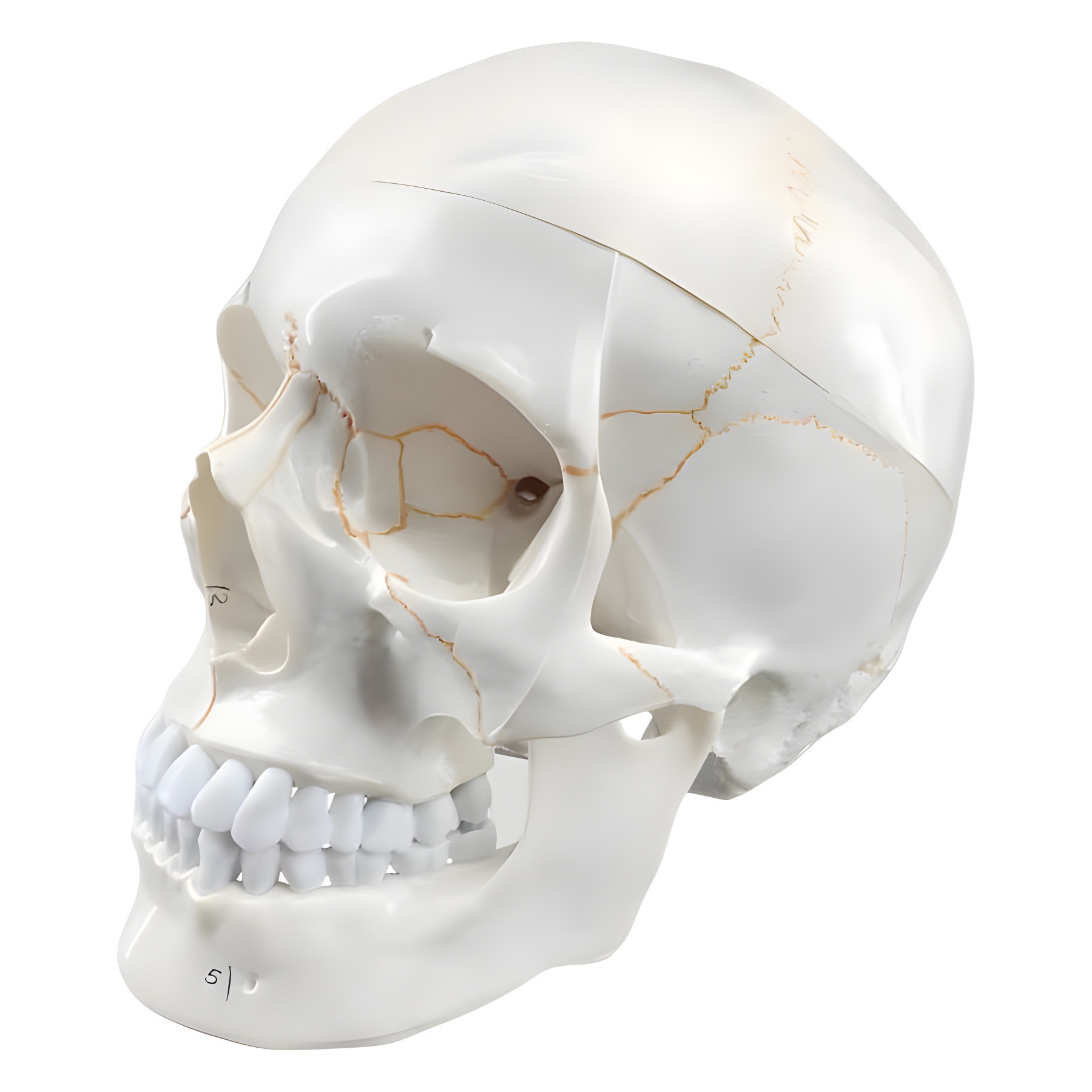 模型大小为20cm*14cm*17cm模型可以拆分为颅盖、颅底和下颌骨3部分,显示颅骨形态毗邻和颅底的内、外、前和侧面的结构和形态及骨性标志。