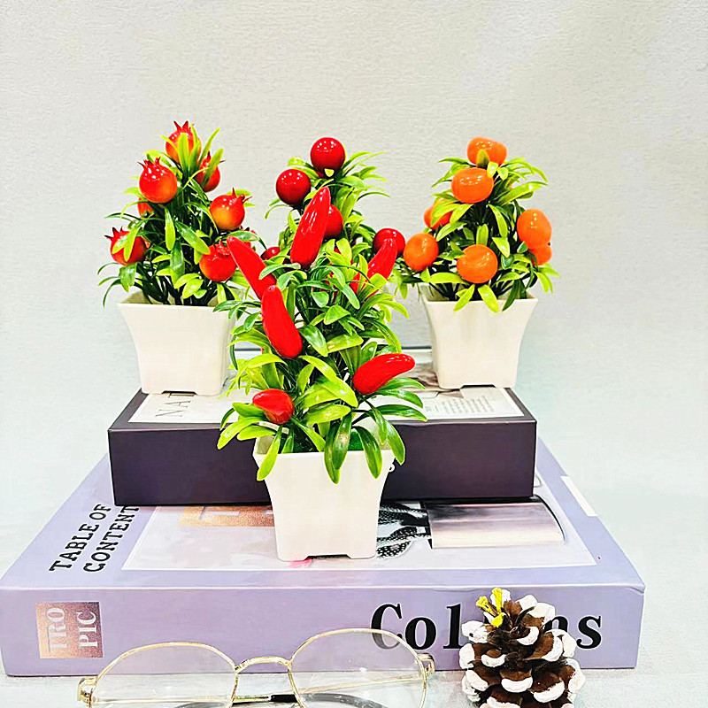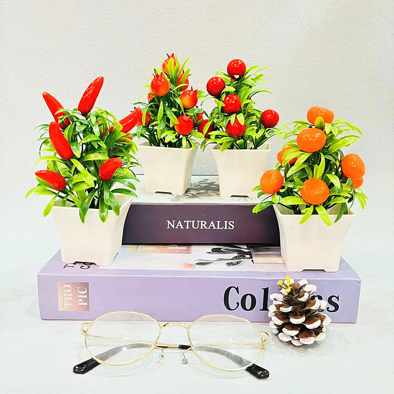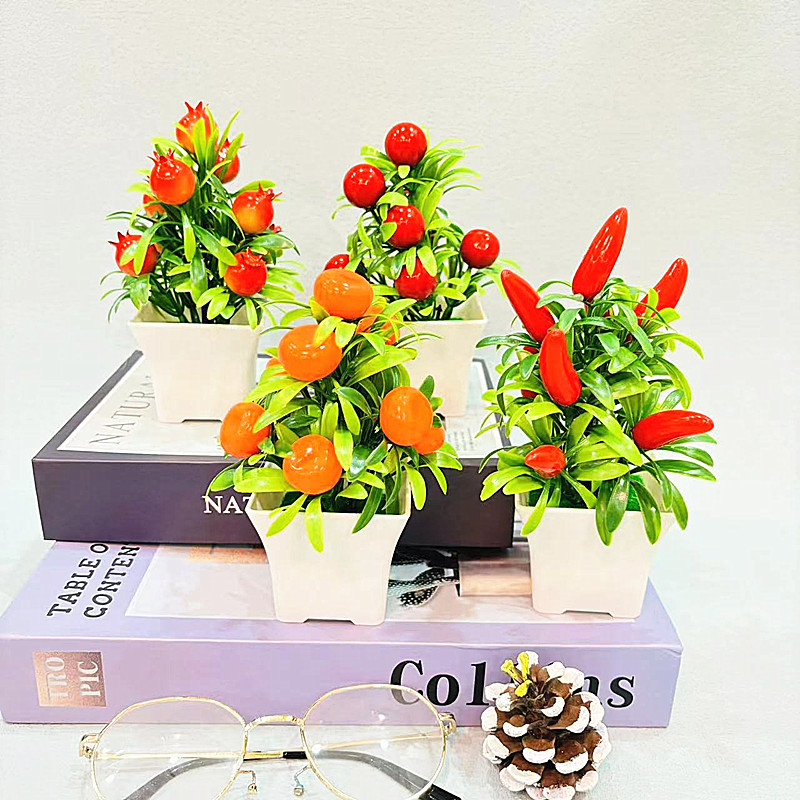 仿真盆栽假花盆景仿真水果小摆件新款9个小水果敞口盆小盆栽跨境