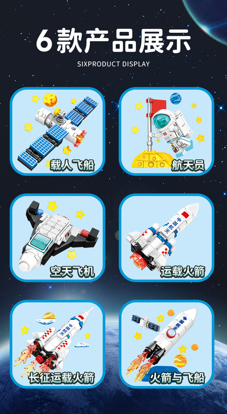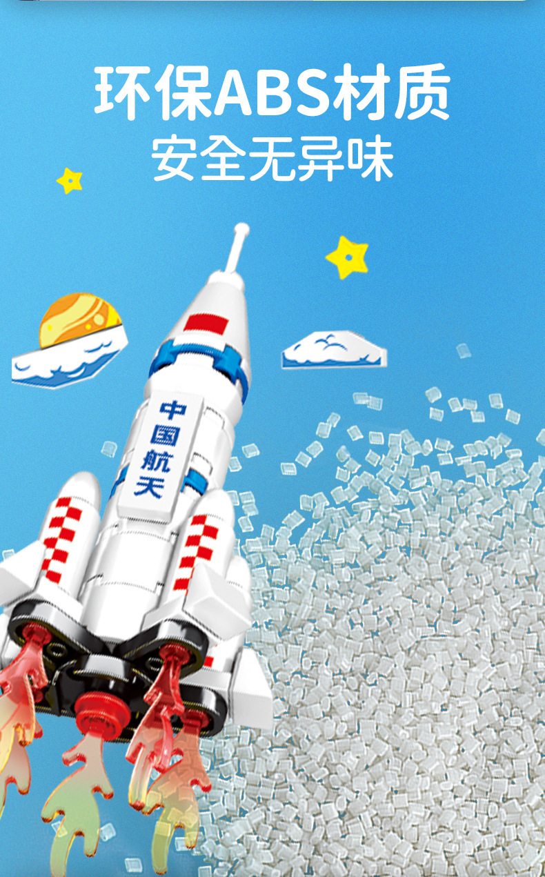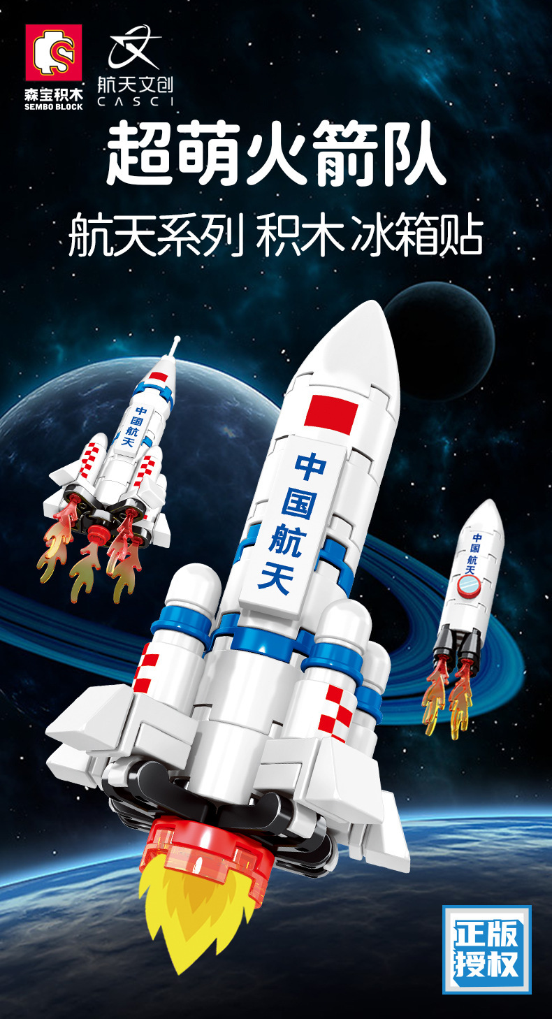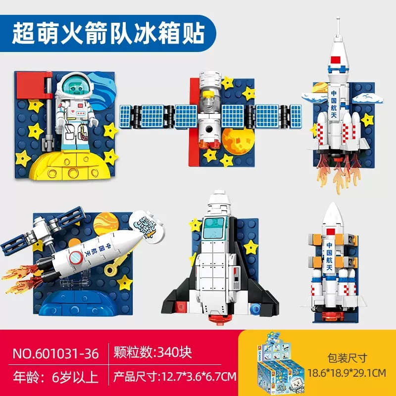 航天积木火箭冰箱贴长征5号载人飞船儿童学生奖品拼装玩具小盒6岁