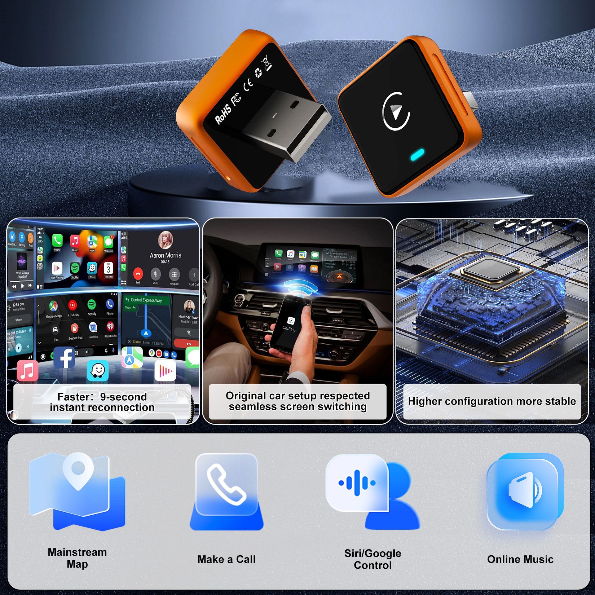 爆款无线汽车适配器carplay转换器有线转无线carplay车载互联盒子 English | 投诉