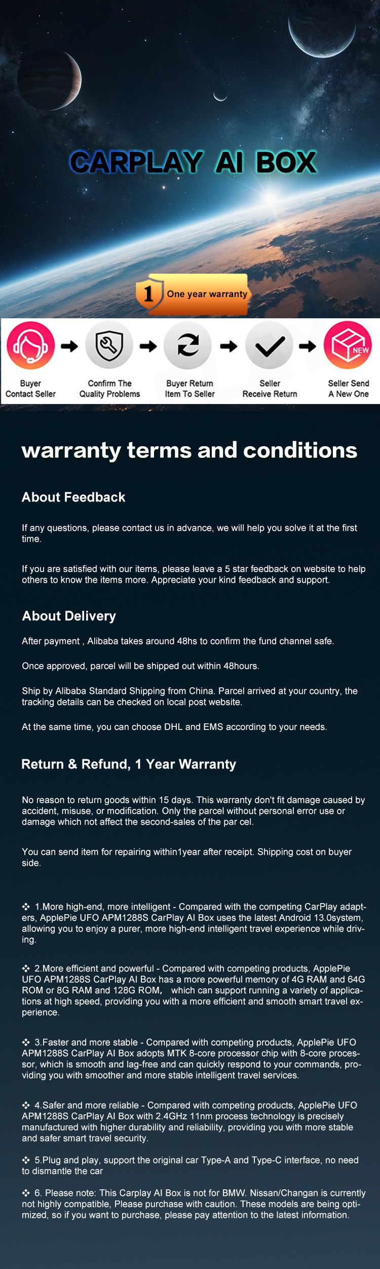 AI025(高通6125带屏支无线/有线/Android AUTO 三合一)8G ¥70500 8930个可售