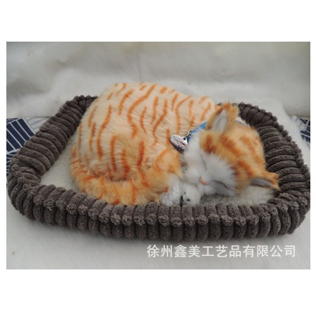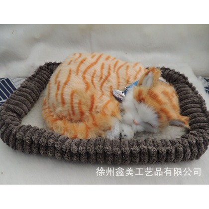 毛绒仿真动物呼吸猫仿真橙色斑猫会呼吸的仿真猫摆件礼品装饰