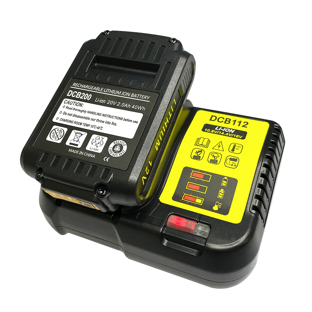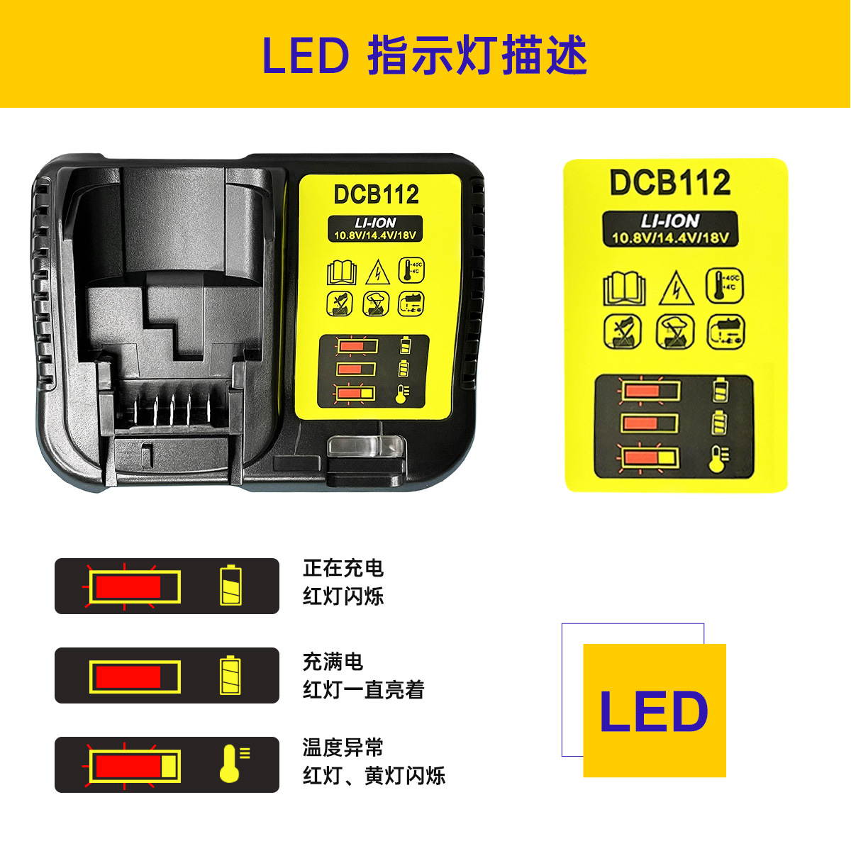 2.可使用电池包型号:DCB120,DCB140,DCB141-XJ,DCB182,DCB183,DCB200,DCB204,DeWALT DCB200。