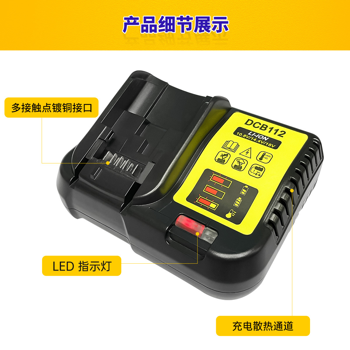 1.适用于德伟锂电12V,14.4V,20V电池包。