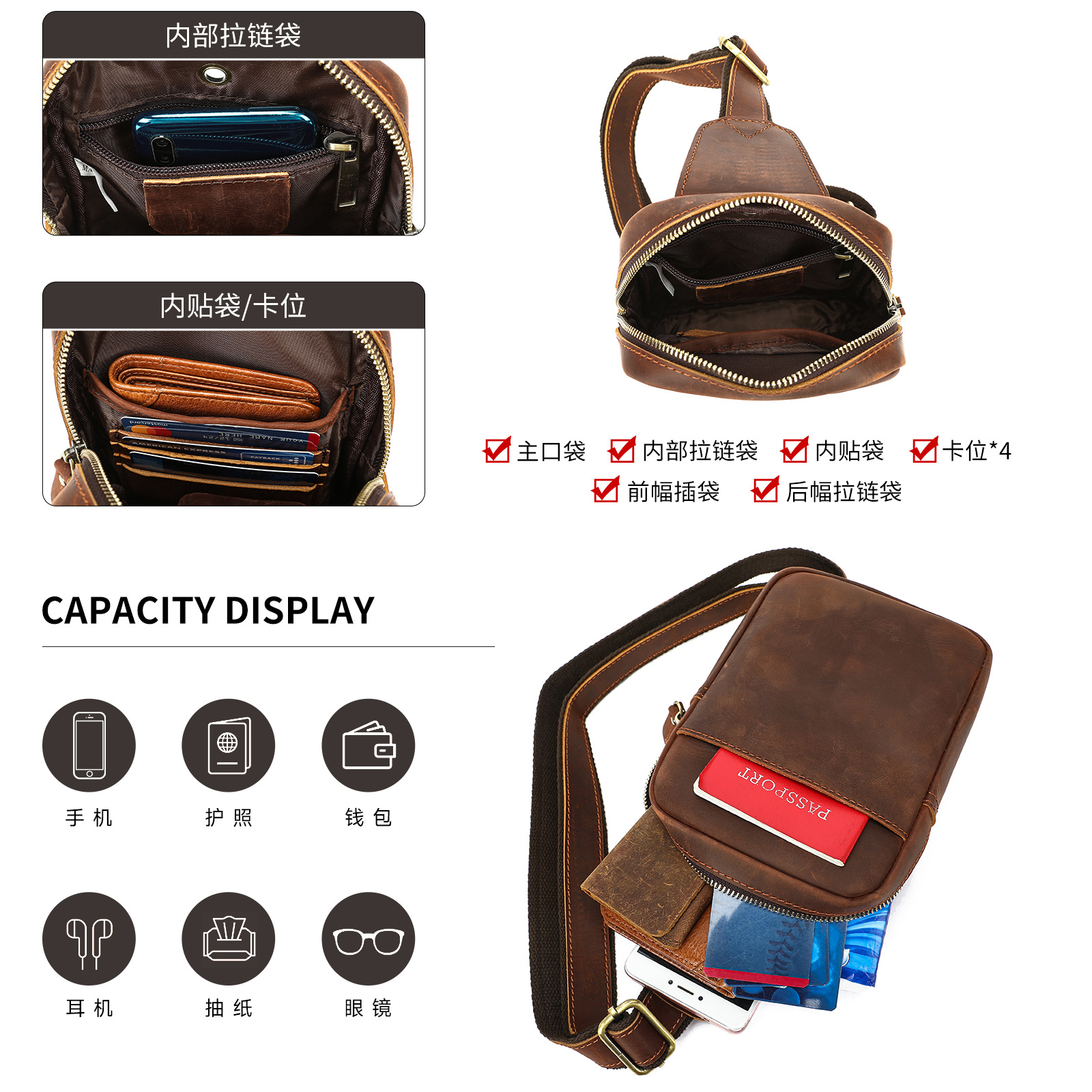材质: 真皮 功能: 耐磨,减负 里料质地: 牛皮 容纳电脑尺寸: 8英寸 皮质特征: 头层牛皮 品牌: MVA 风格: 复古风 流行元素: 车缝线 货号: 9254 图案: 纯色 颜色: 棕色 有可授权的自有品牌: 是 上市年份季节: 2025年秋季 适用场景: 日常搭配 尺寸: 15*5*20cm 重量: 0.4 kg/个