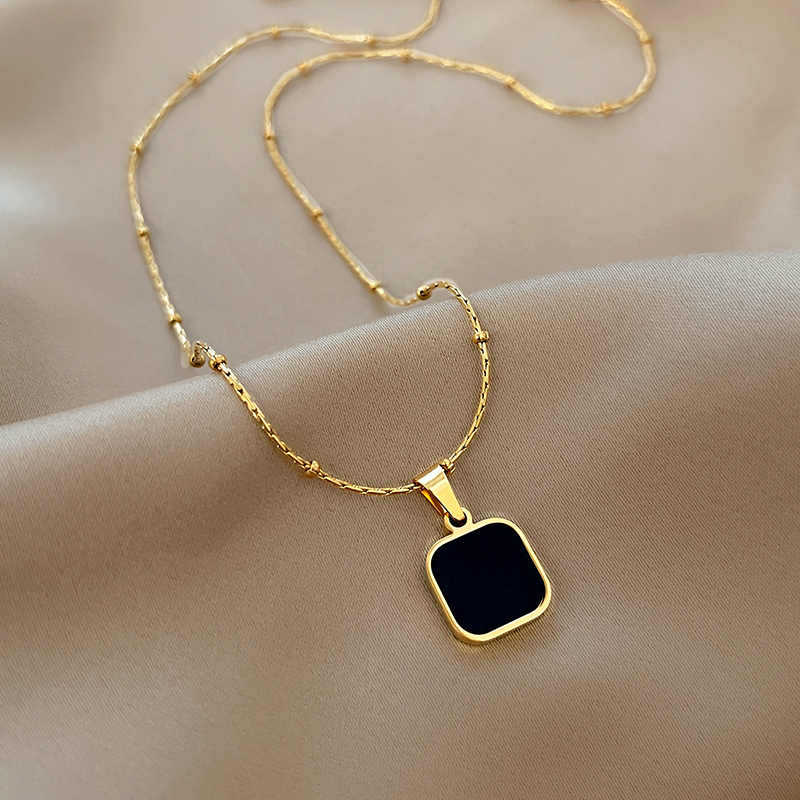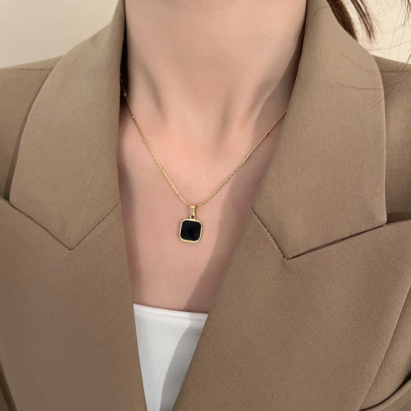 小方块吊坠项链女款2025新款轻奢小众设计感配饰锁骨链高级感颈链