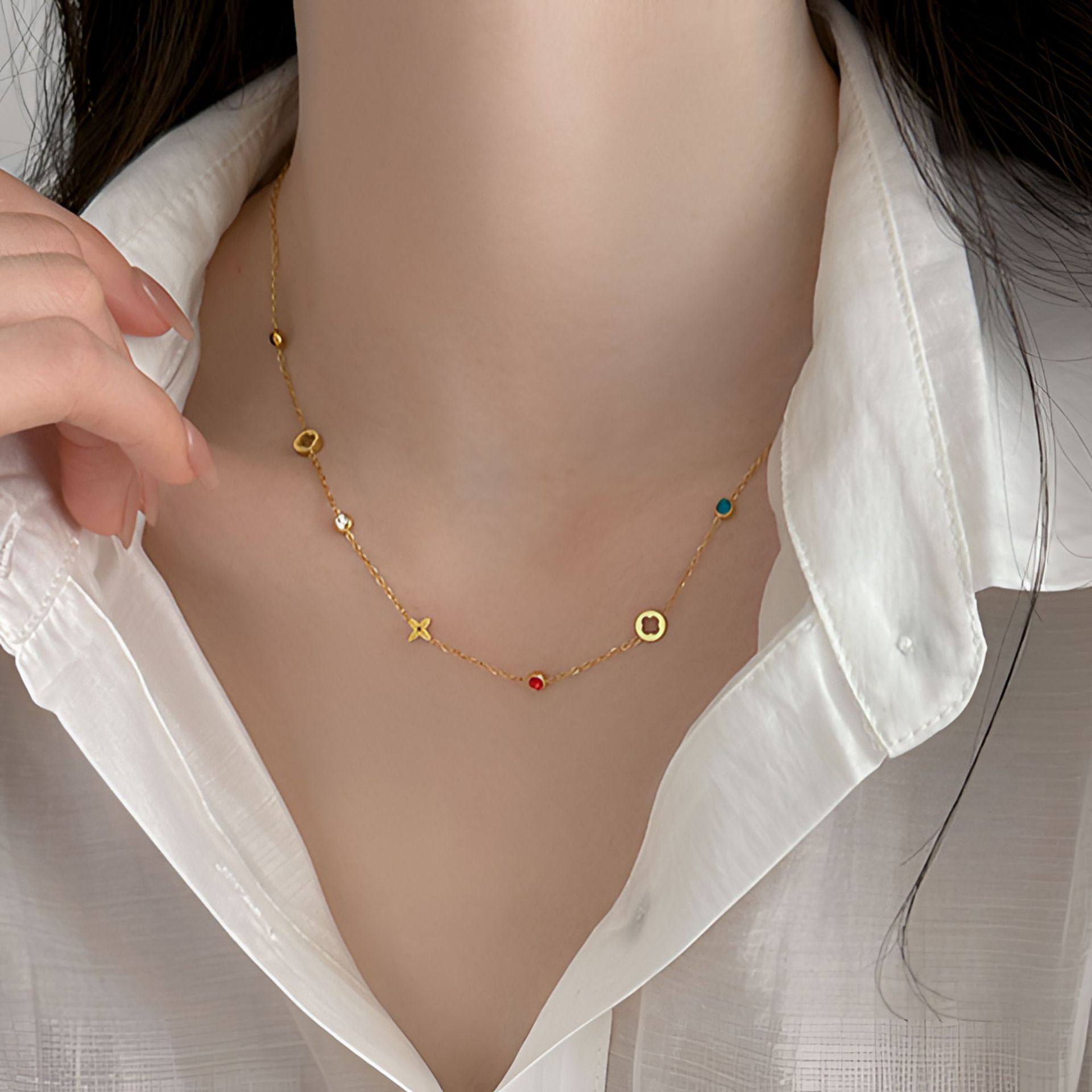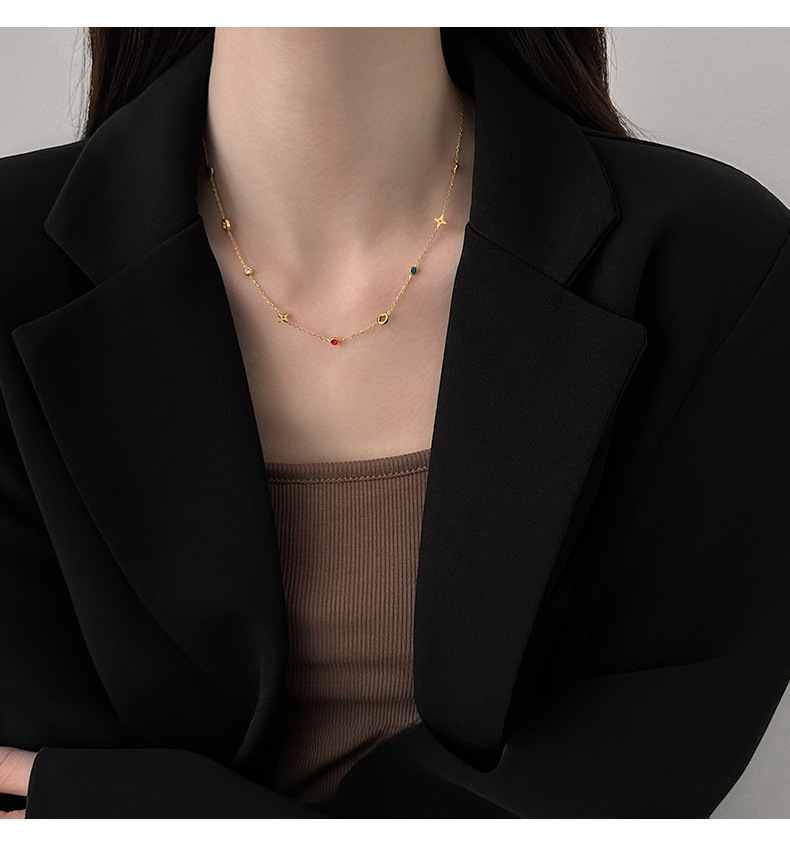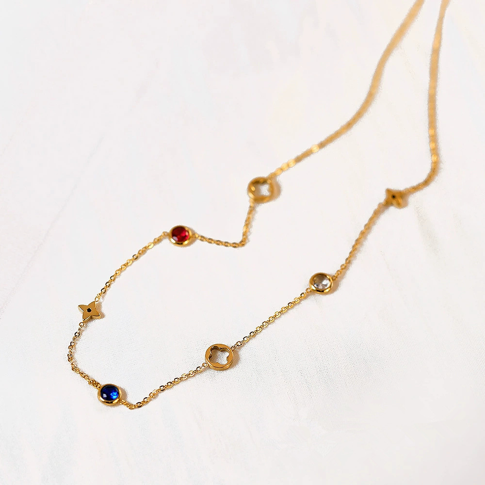 精致高级感幸运草彩色锆石项链女春夏轻奢简约锁骨链气质百搭颈链 English | 投诉
