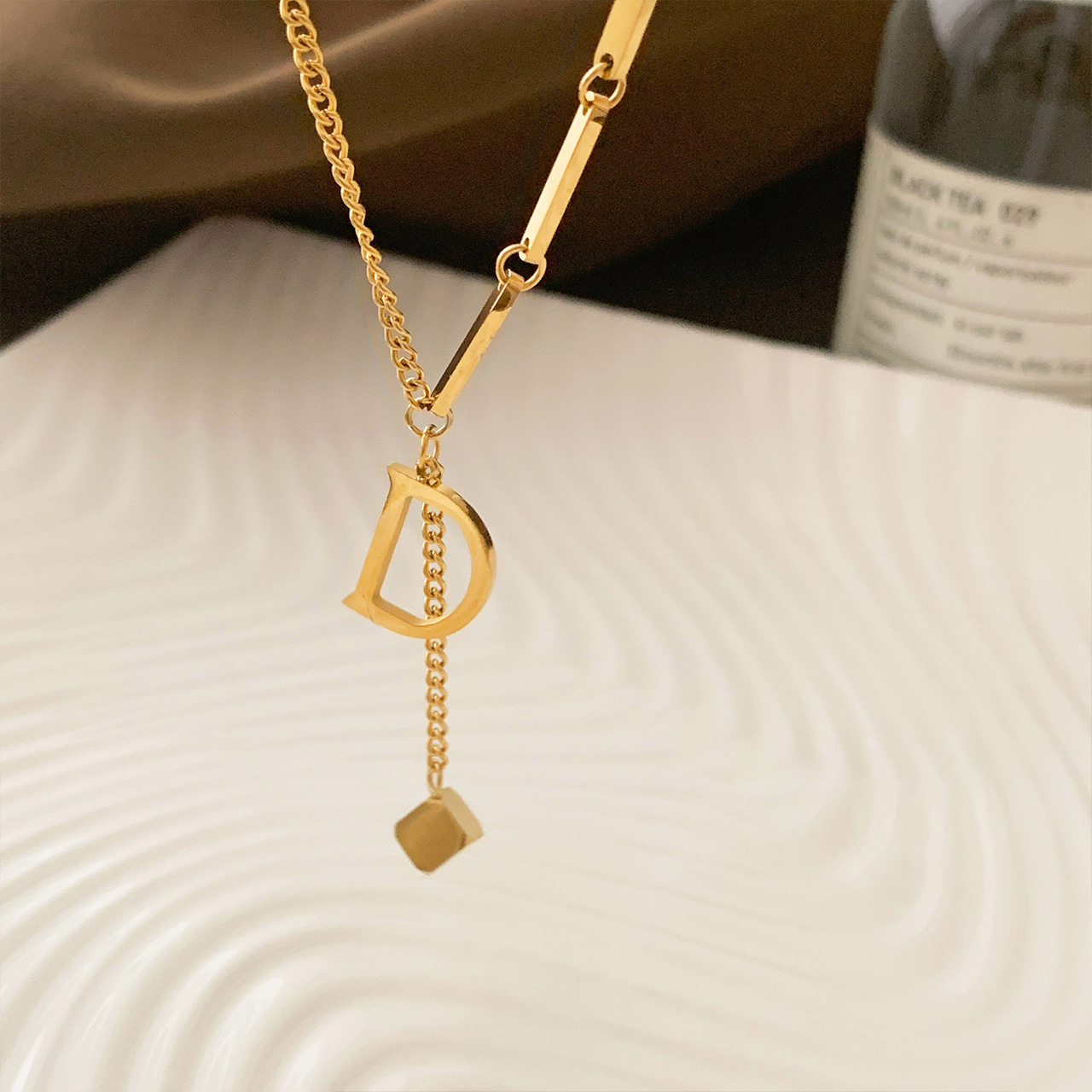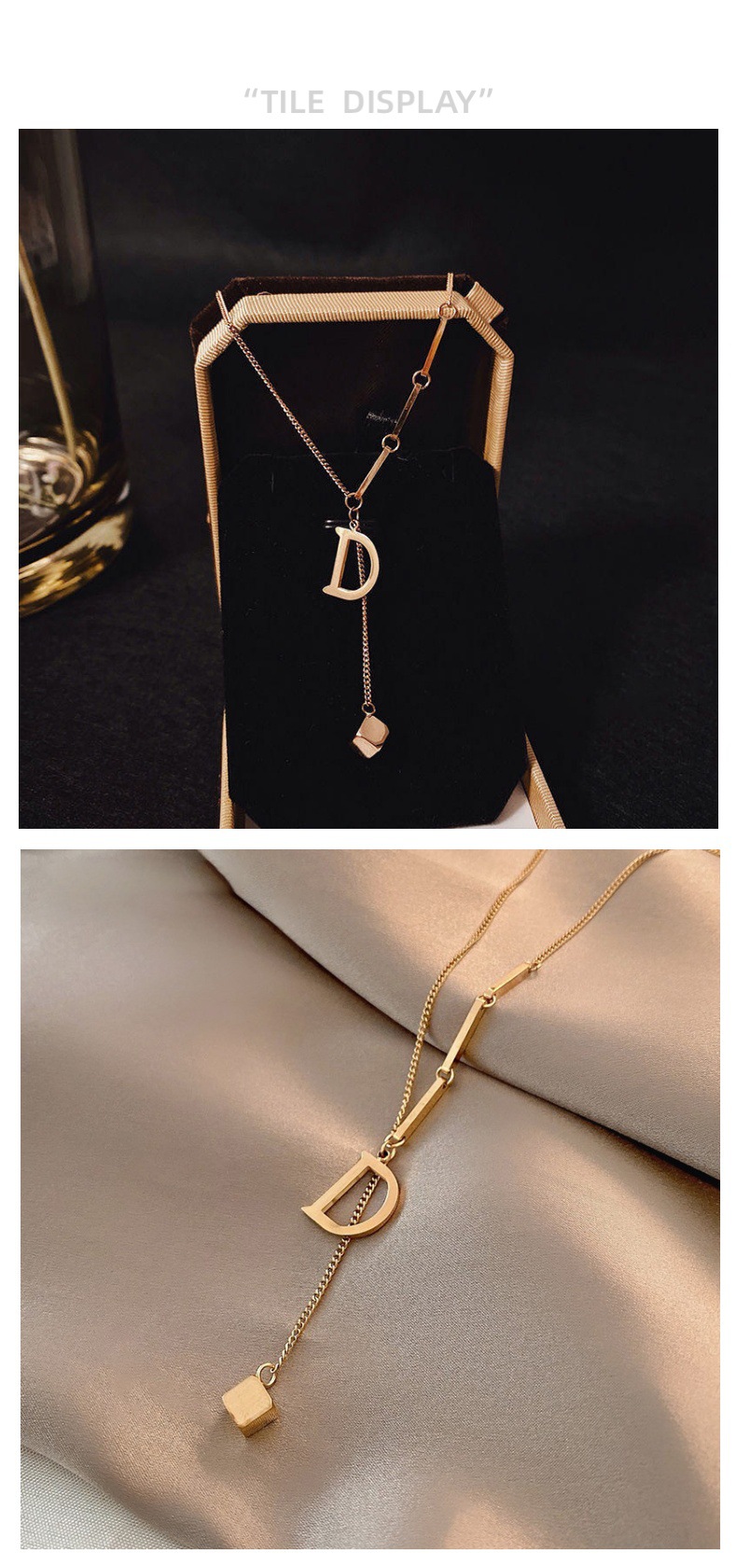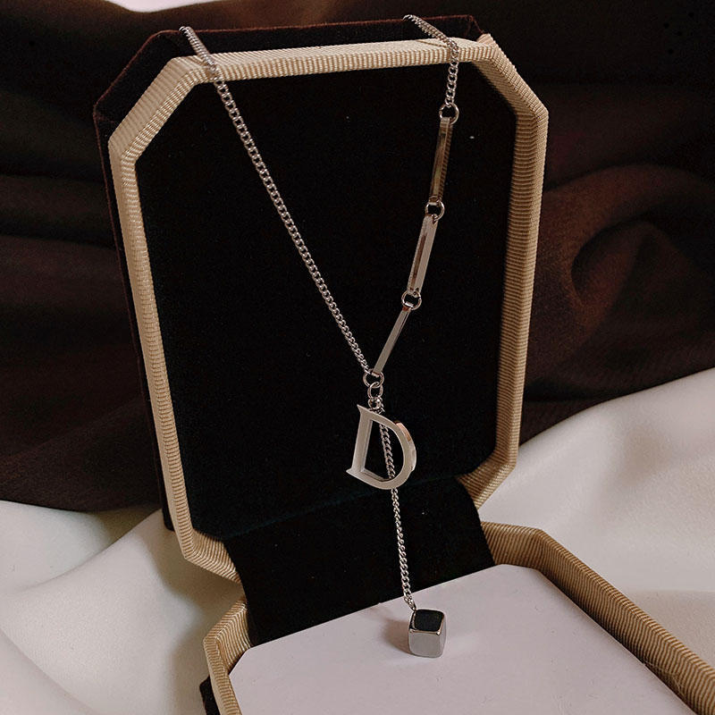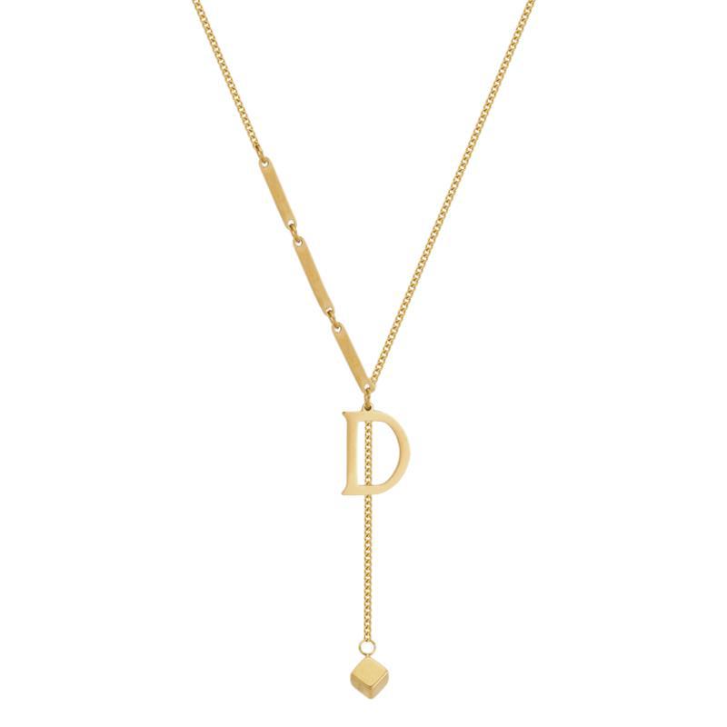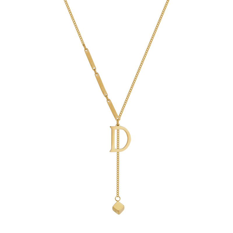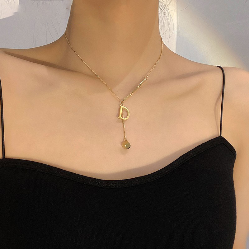 不掉色钛钢D字母长款毛衣链2024年新款网红设计感项链女锁骨链潮 English | 投诉