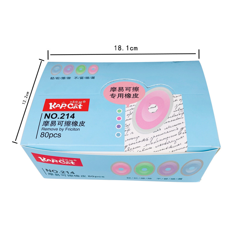 品牌: 咔皮猫 材质: 摩擦橡皮 尺寸: 单块实测长约6cm 造型: 卡通 货号: NO.214 一件是一个 型号: 214 规格: 80个/盒 用途: 热可擦橡皮 加印LOGO: 不可以 加工定制: 否 是否进口: 否 是否跨境出口专供货源: 否 是否属于礼品: 否 是否专利货源: 否 是否IP授权: 否 是否电动: 否 重量: 0.005 kg/个