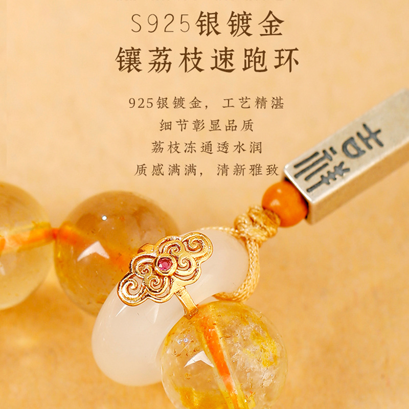 金发晶手机链挂绳指环925银镀金镶荔枝跑环防摔手捻防丢挂饰挂件