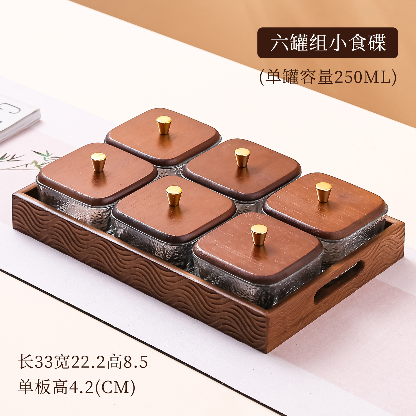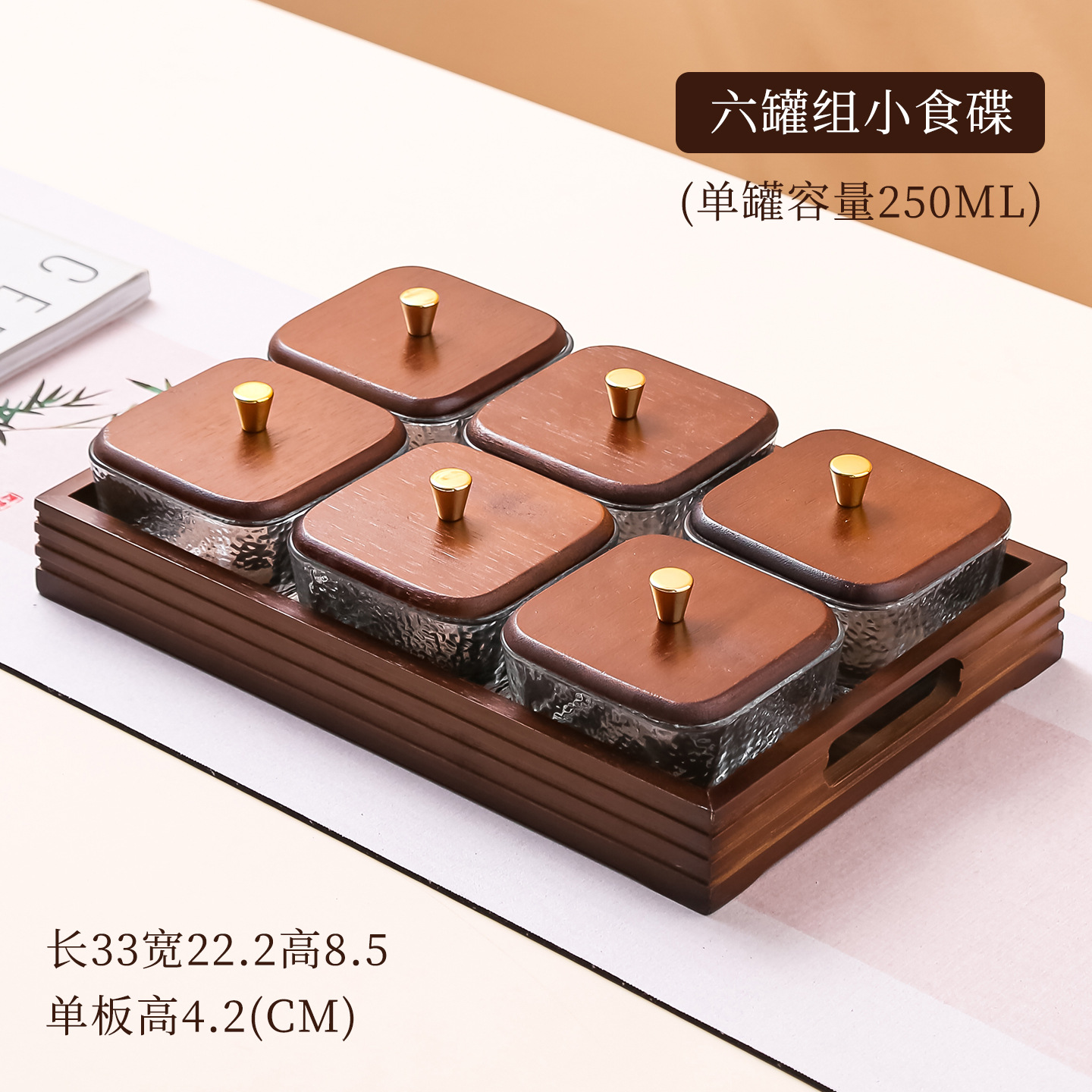 水果盘客厅家用零食盘胡桃木色轻奢玻璃茶几茶点糖果分格干果盘