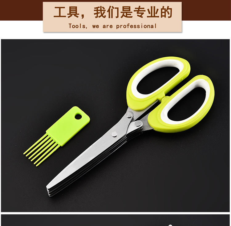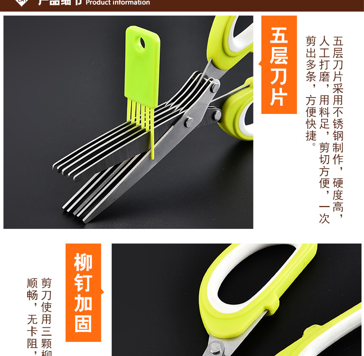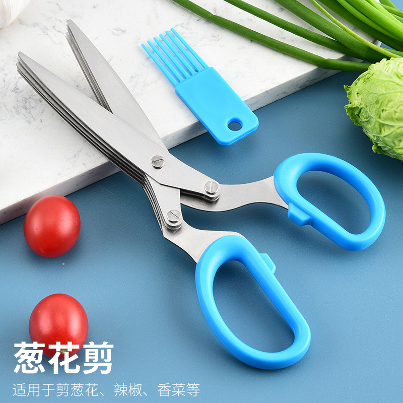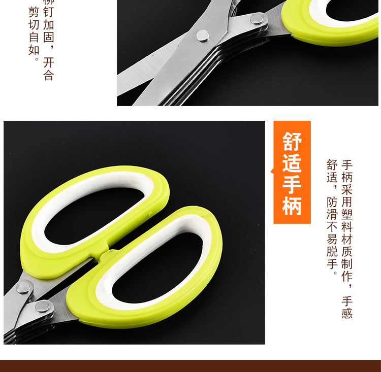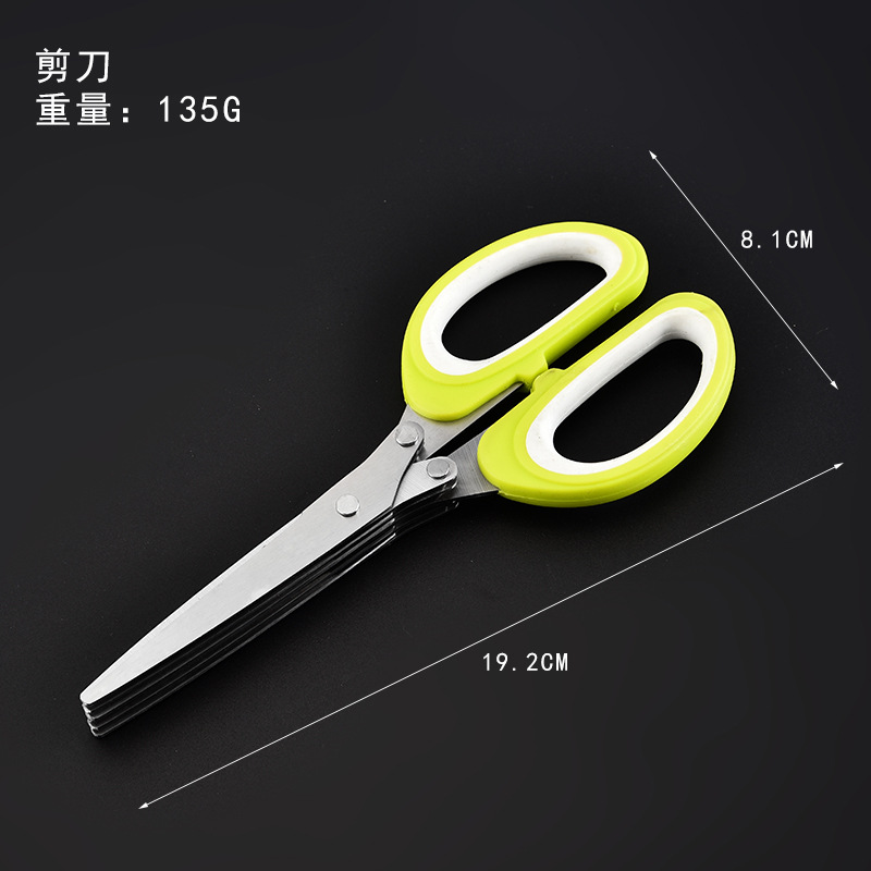 多功能碎蔬菜辅食剪葱多层剪 带清洁刷厨房家用五层不锈钢葱花剪