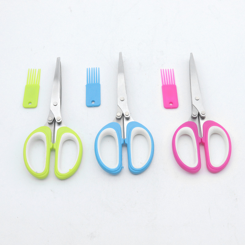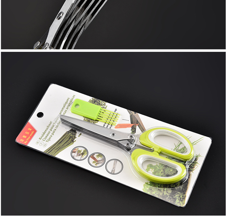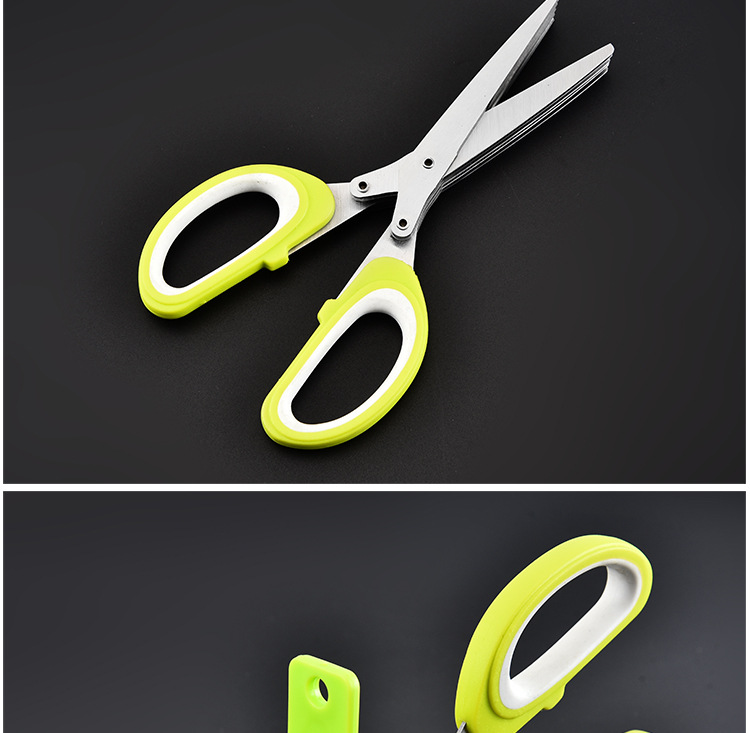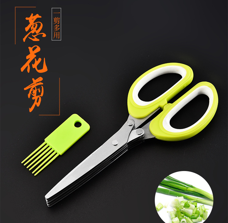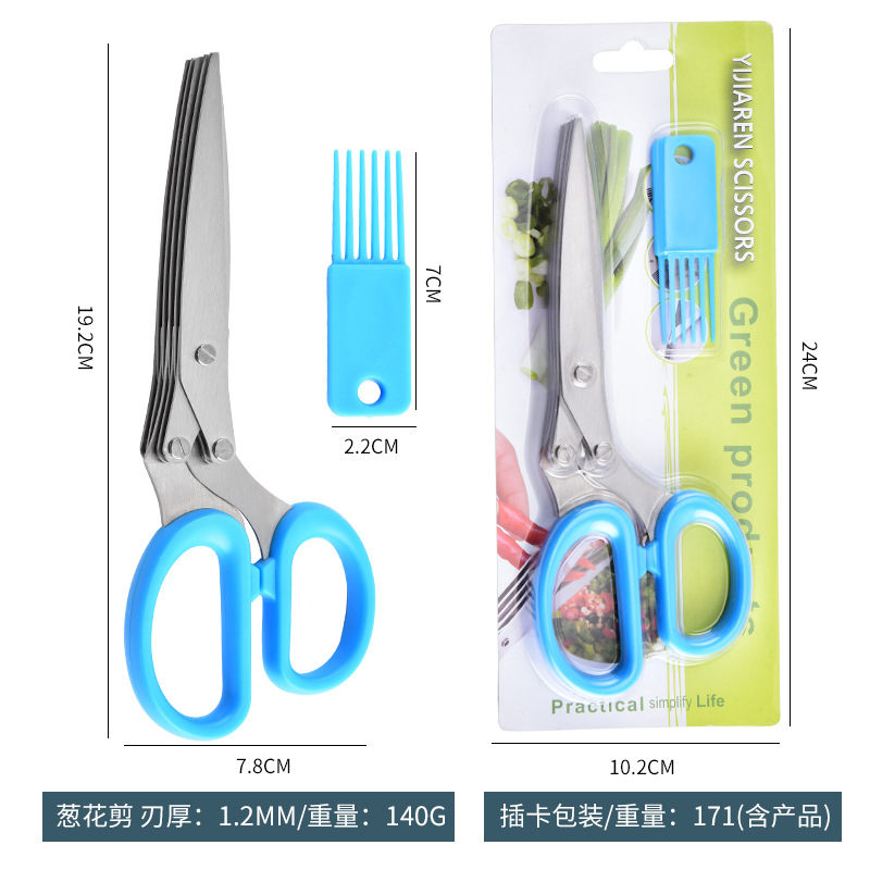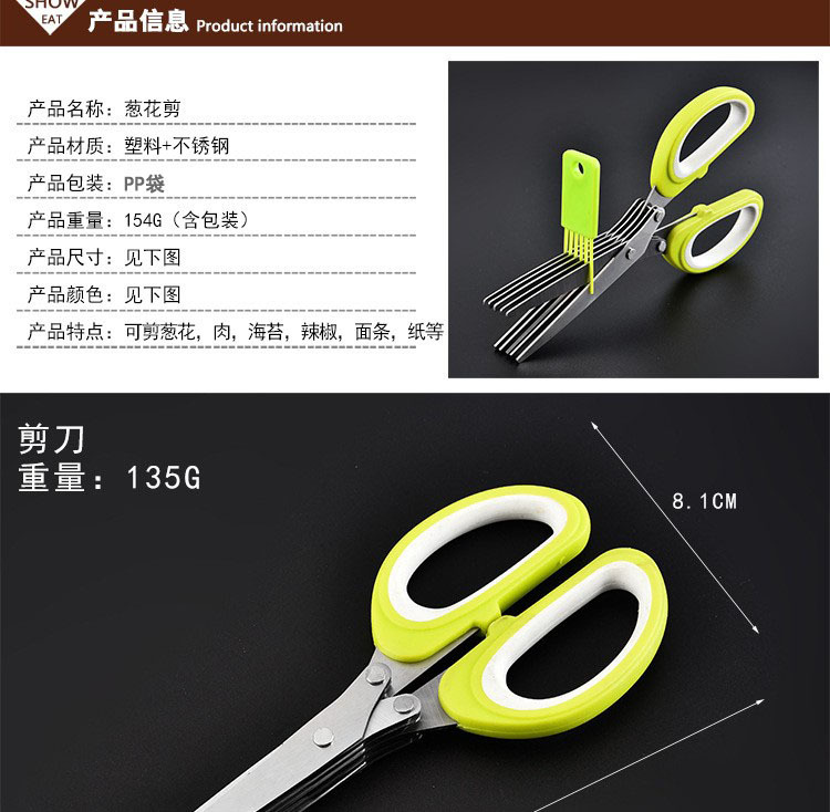多功能碎蔬菜辅食剪葱多层剪 带清洁刷厨房家用五层不锈钢葱花剪