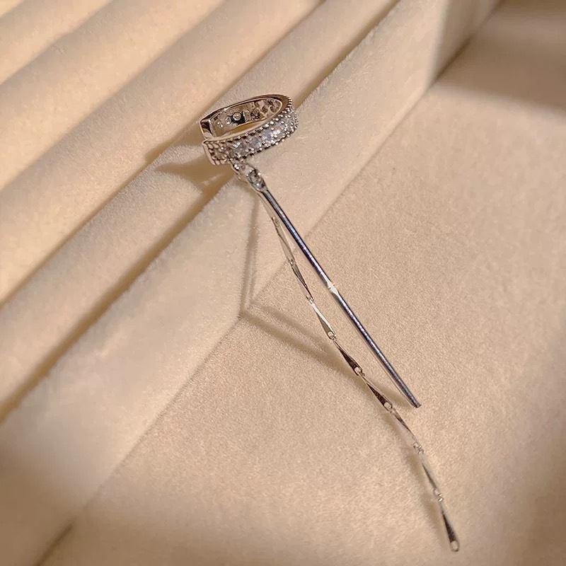 小众轻奢高级感长款流苏耳夹微镶锆石设计双流苏耳骨夹无耳洞耳饰 投诉