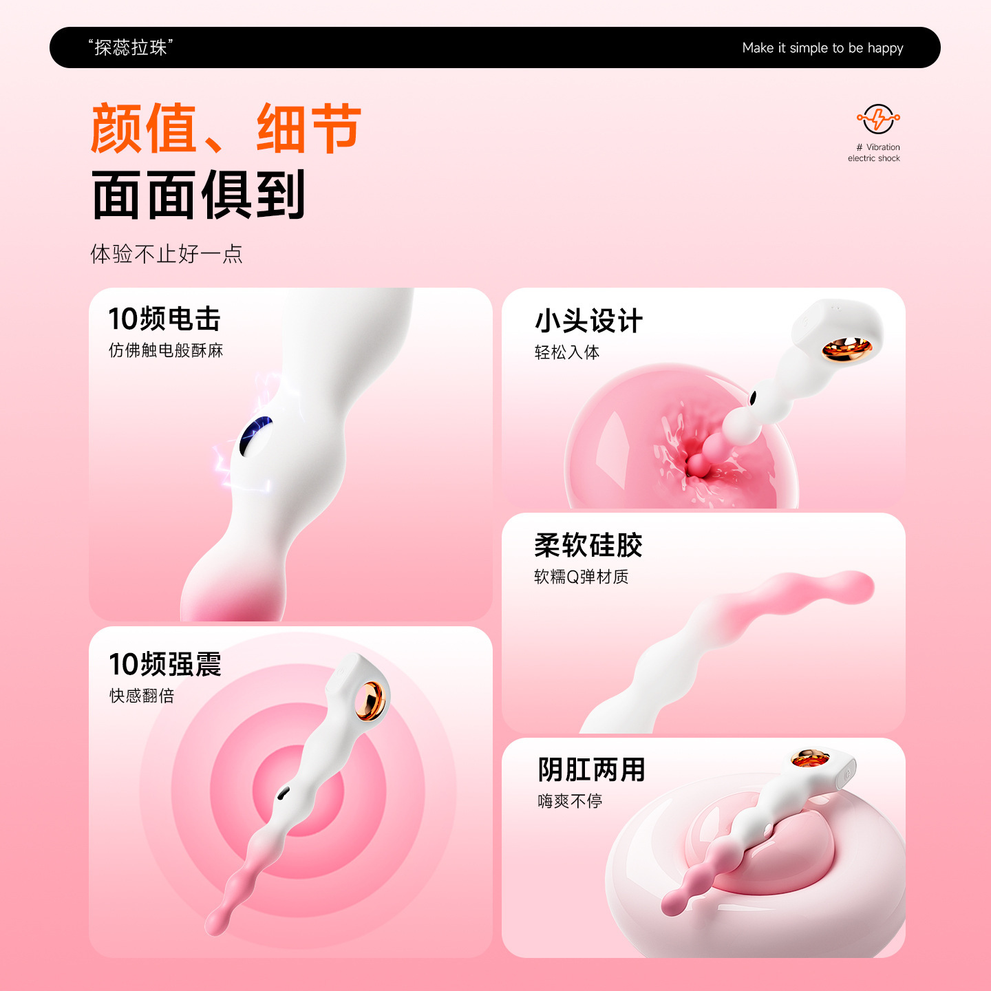 材质: 硅胶+ABS 颜色: 粉白渐变 年龄: 成年 货号: 探蕊拉珠 产地: 其他 是否进口: 否 规格: 探蕊拉珠-震动款 是否跨境出口专供货源: 否 人群: 成人 重量: 0.09 kg/个