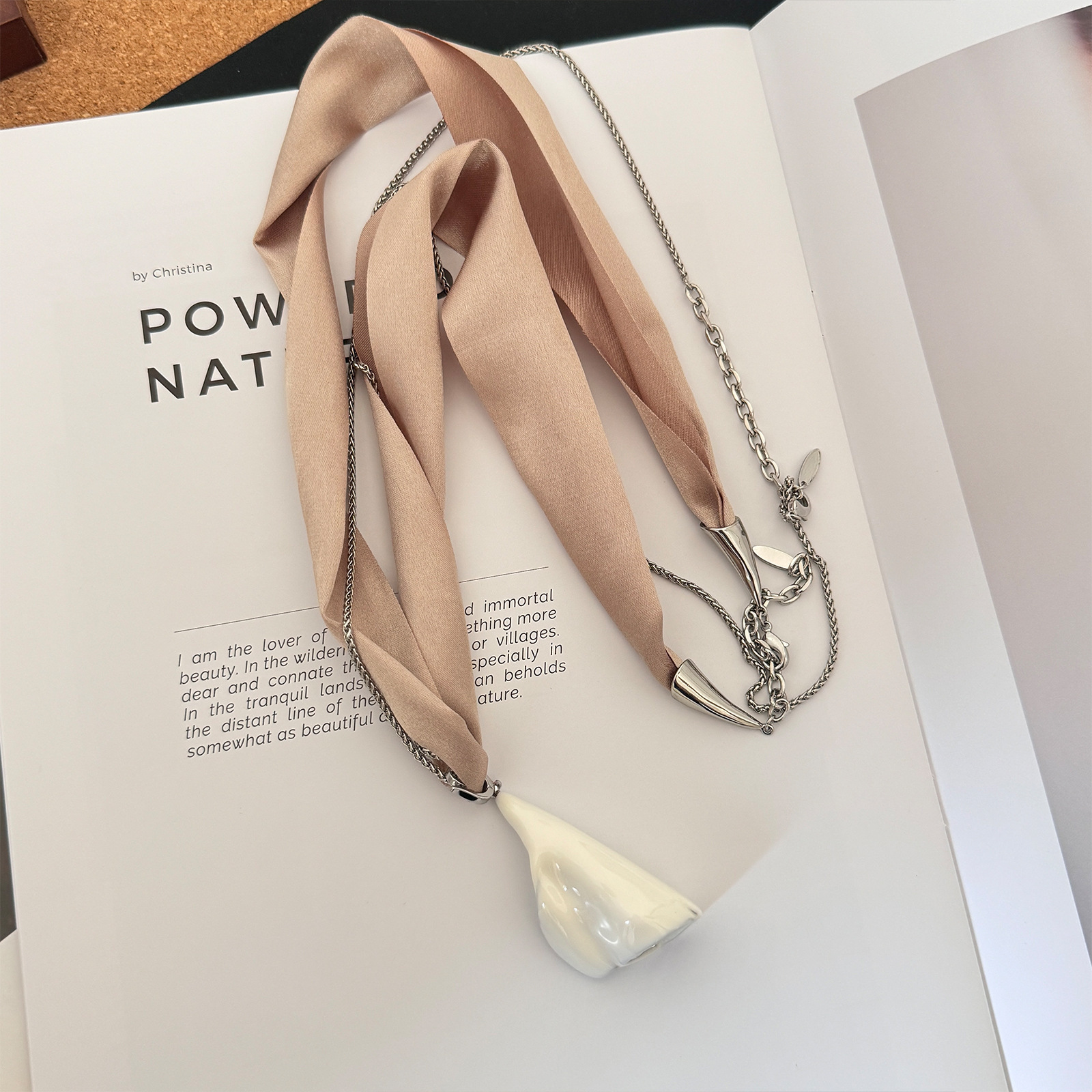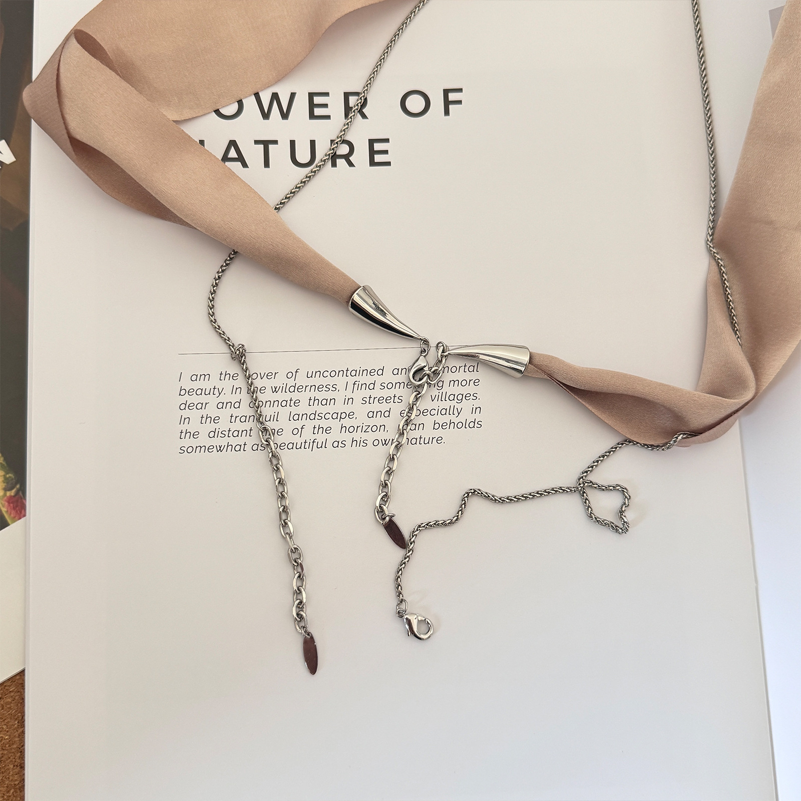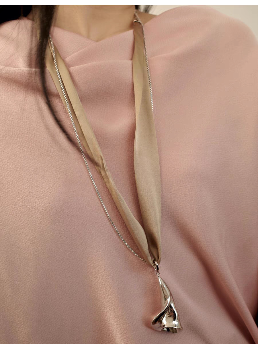 2025镐涵高定缪斯系列白珐琅银色马蹄莲金属链条与丝带两戴项链女 投诉