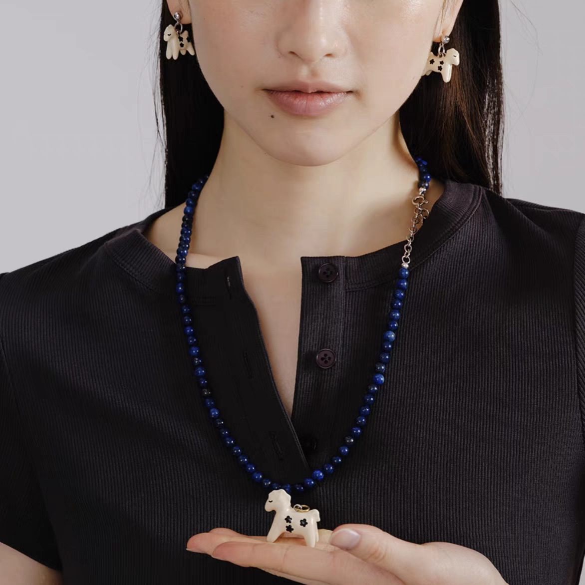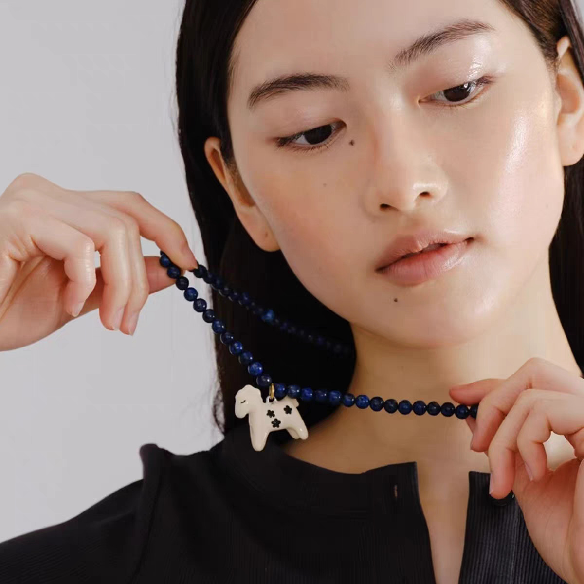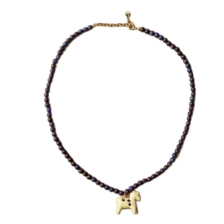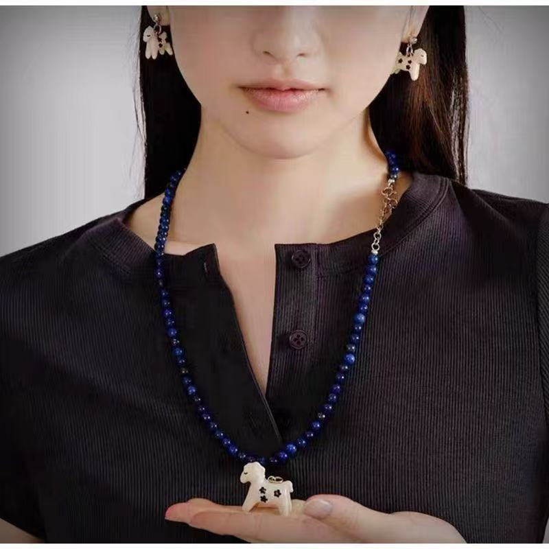 小众设计新品珐琅滴釉绘画小马吊坠项链女简约青金石串珠锁骨短链