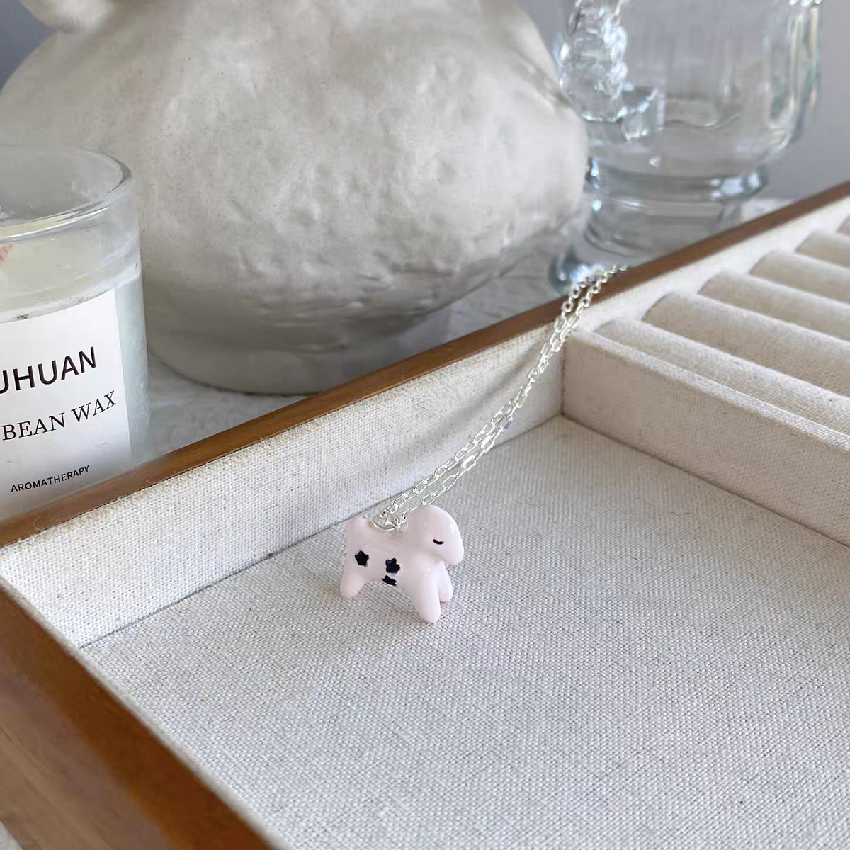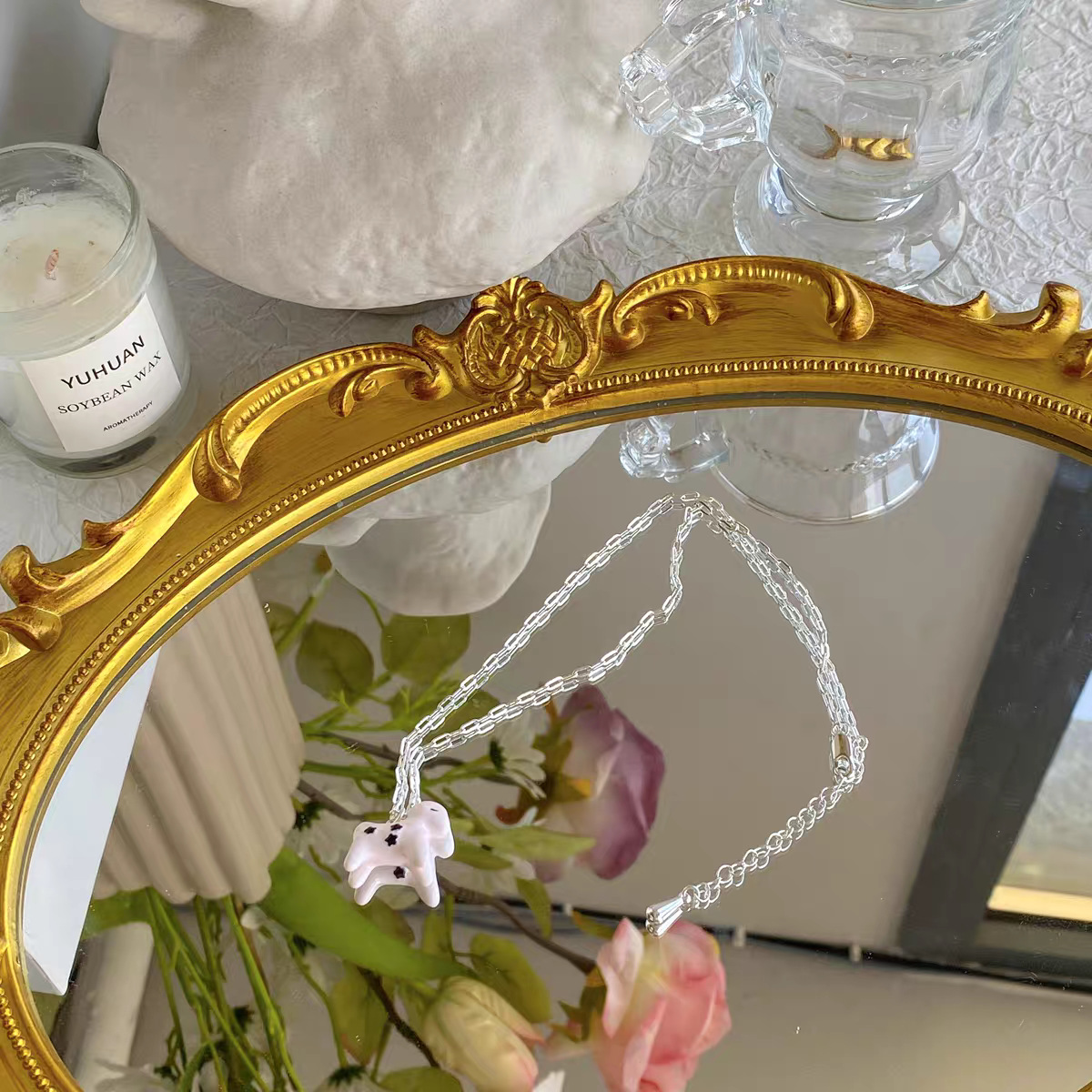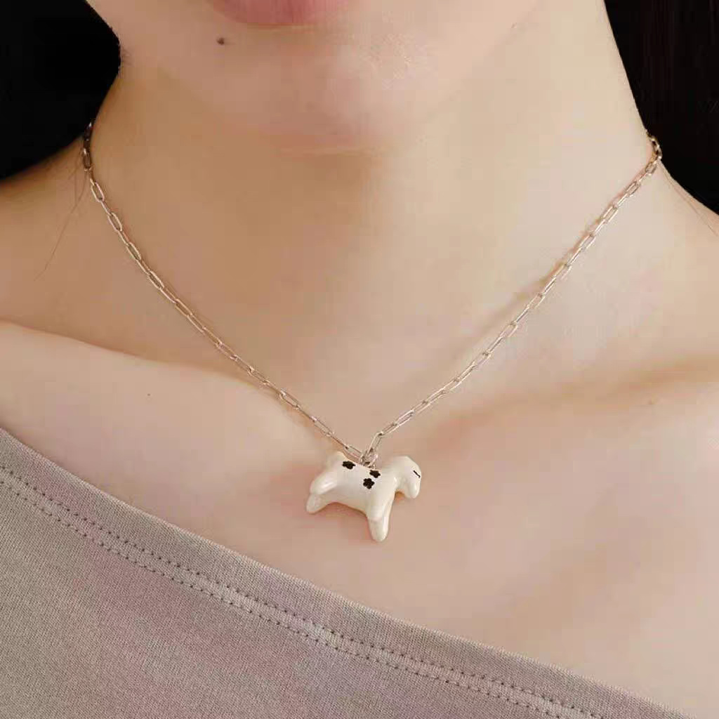 小众设计新品珐琅滴釉绘画小马吊坠项链女简约青金石串珠锁骨短链