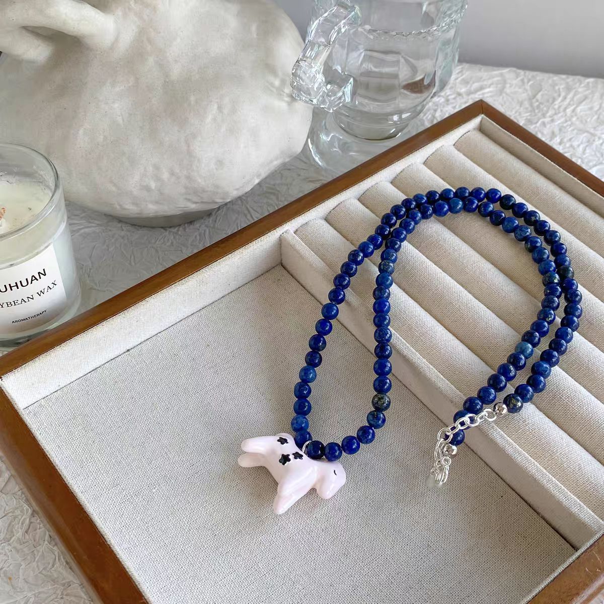 小众设计新品珐琅滴釉绘画小马吊坠项链女简约青金石串珠锁骨短链 投诉