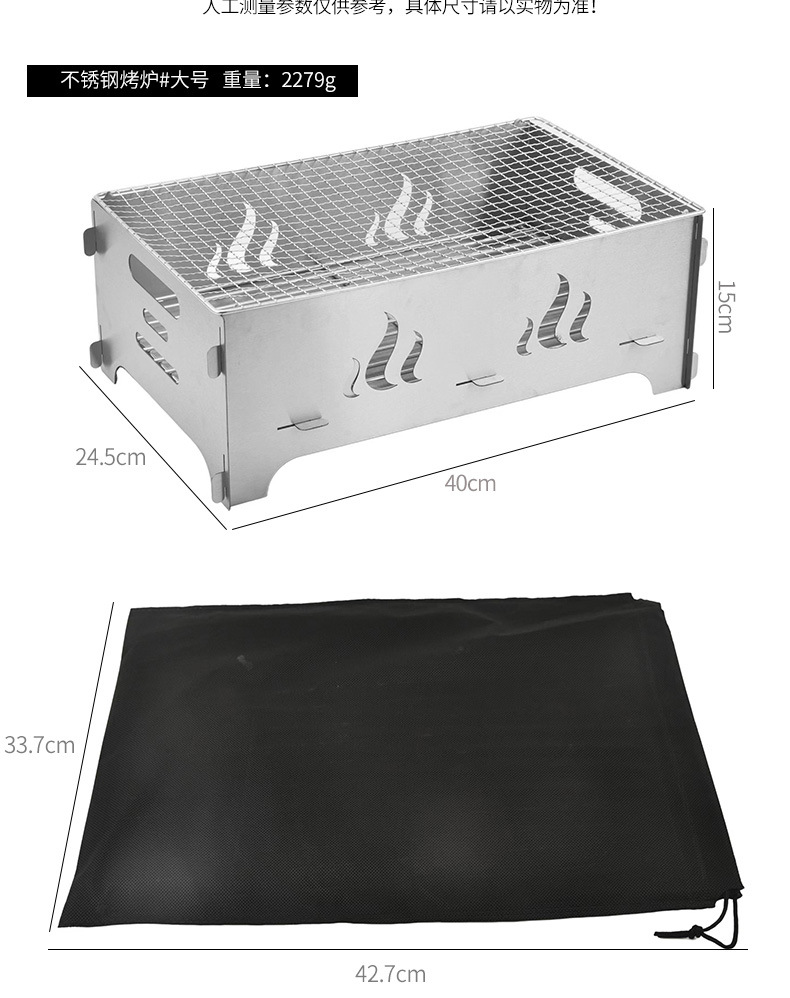 收纳袋便携式不锈钢烤炉 露营烧烤烤肉木炭小型折叠户外烧烤炉