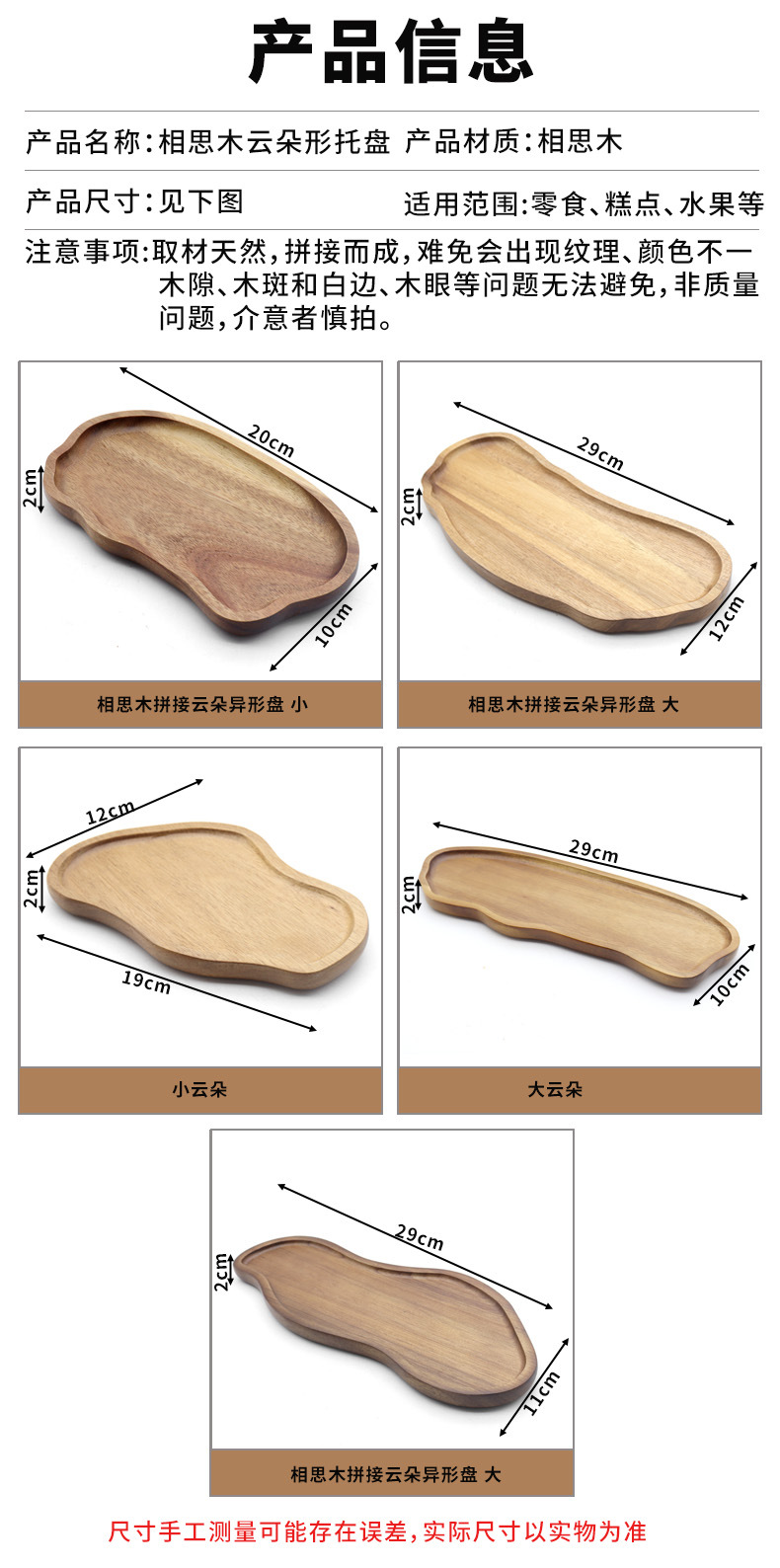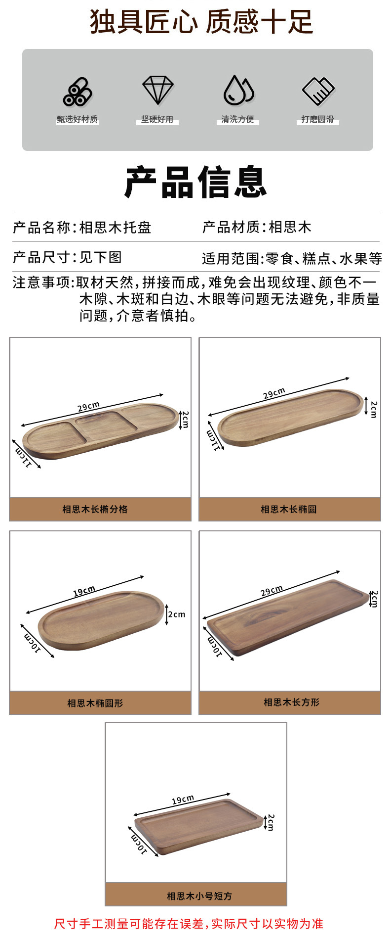 创意日式相思木托盘 咖啡点心蛋糕精致长方形高质感家用实木托盘