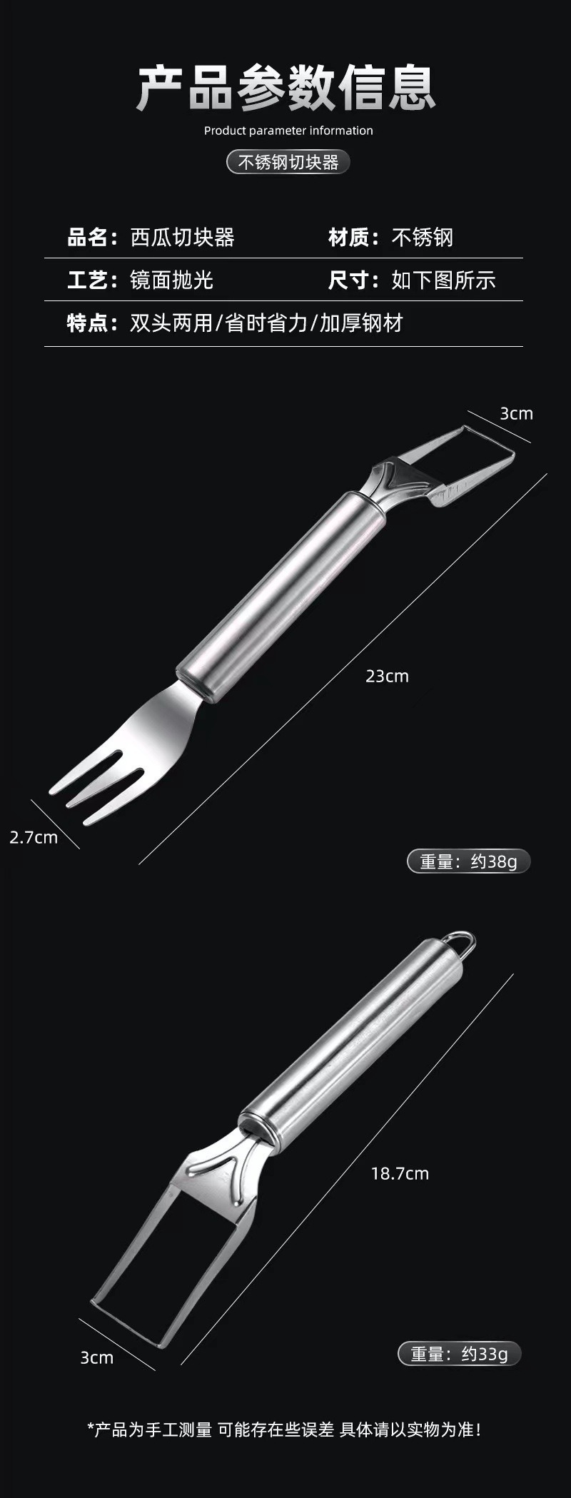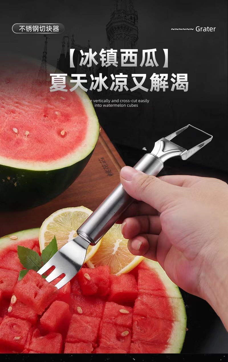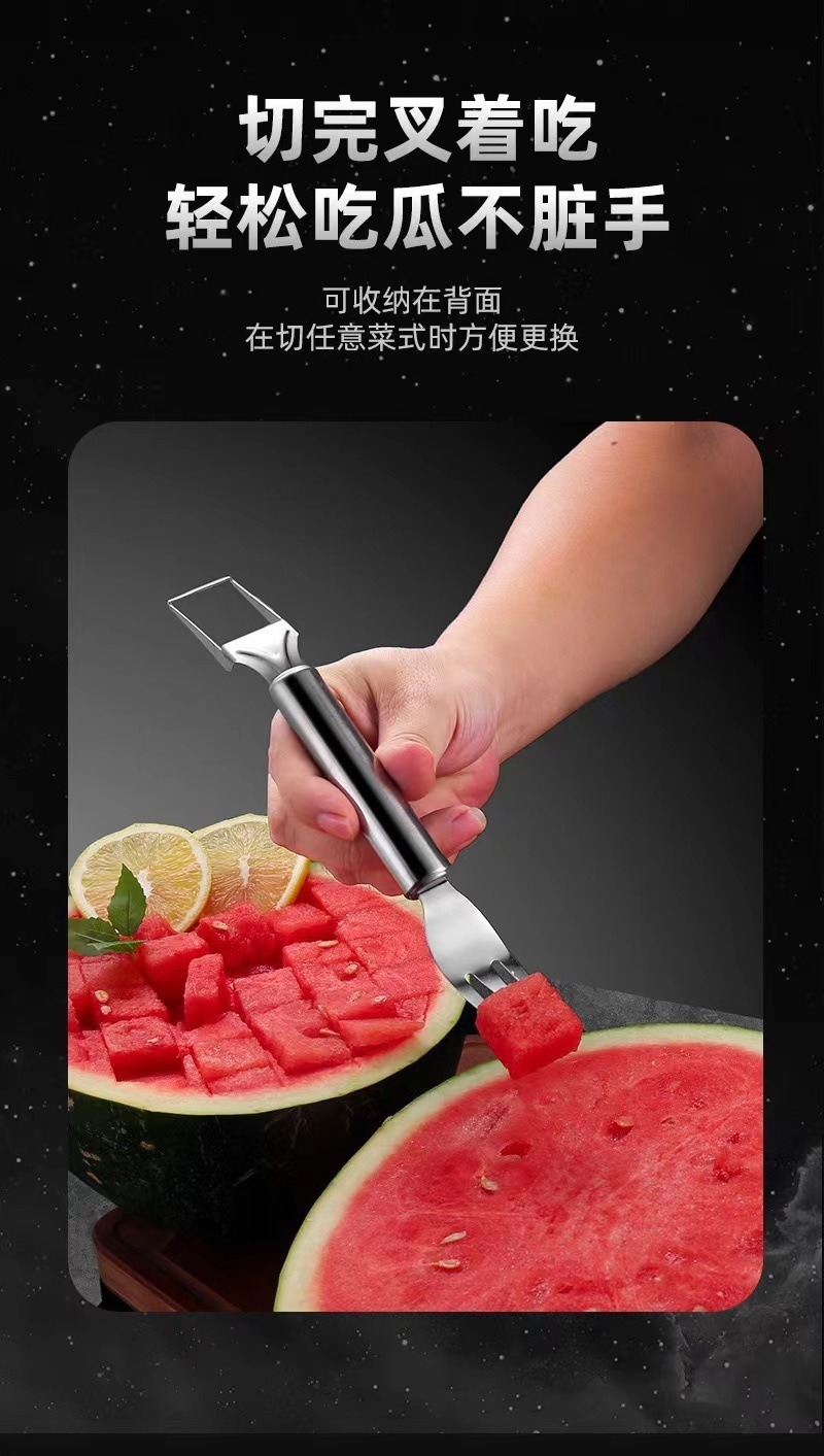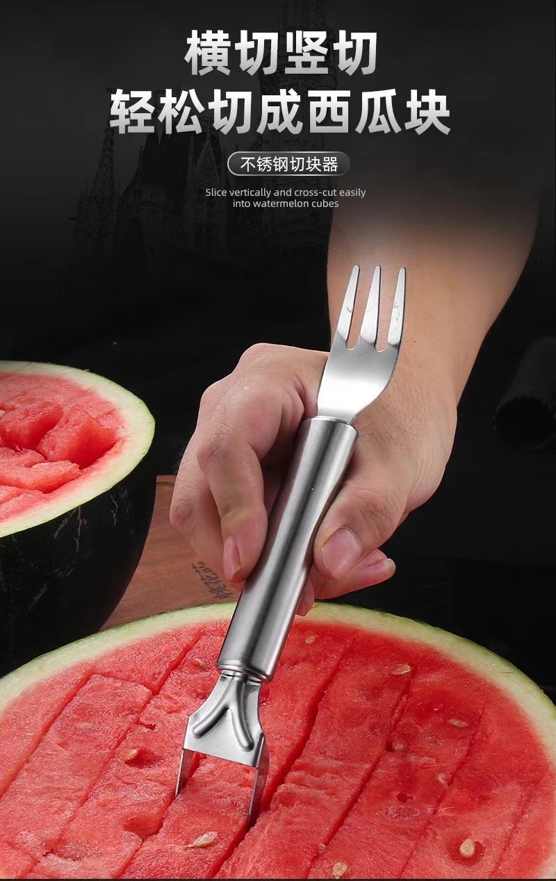 G862不锈钢西瓜切神器水果分割器西瓜切丁器挖果肉器双头水果叉 English | 投诉