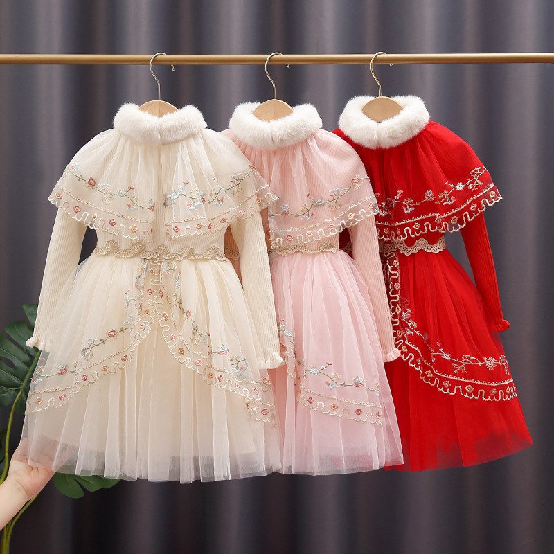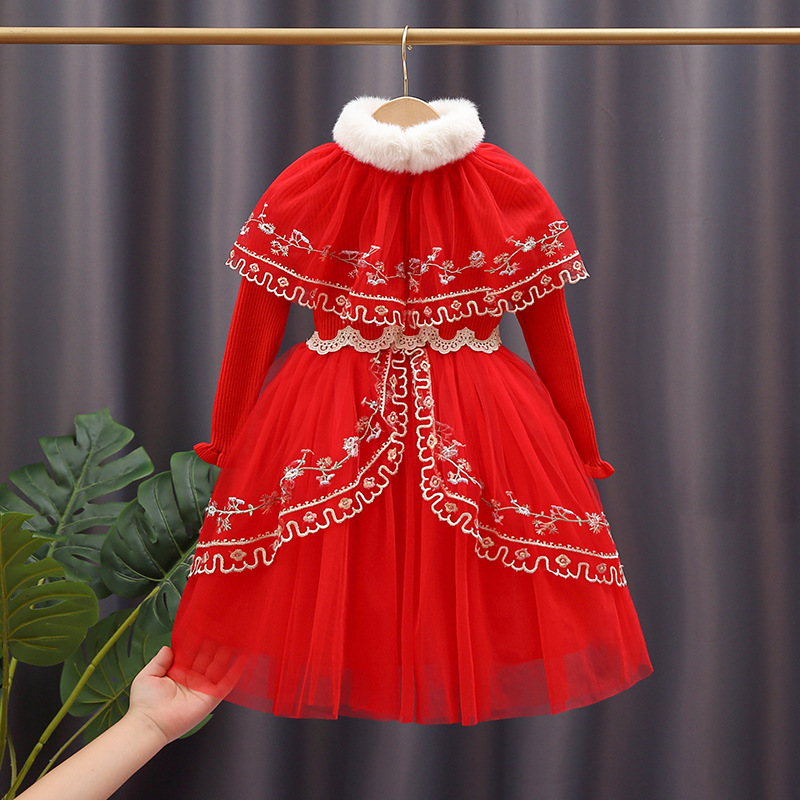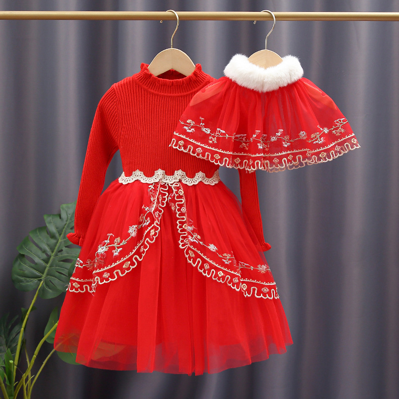 高档女童毛衣公主裙春秋新款儿童新年装红色连衣裙中大童秋冬衣服